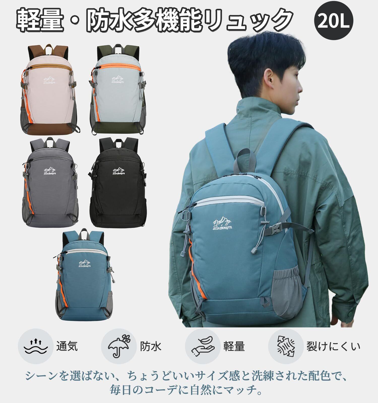 [Kayiyasu] リュック 20L バックパック 登山 ハイキング 防水 軽量 通気 アウトドア 旅行用 バッグ リュックサック ユニセックス レディース メンズ