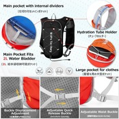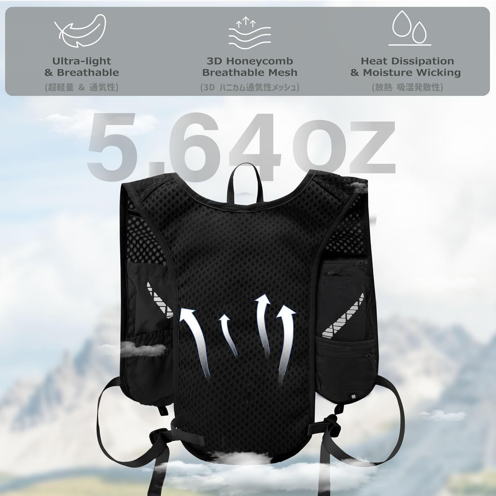 【高通気性】メッシュ素材を採用しており、背部のムレを軽減でき、通気性が高く、汗蒸れがしにくいです。 ランニング、トレイルランニング、マラソン、自転車、登山など、いろんなアウトドアシーンでも快適に着用いただけます
