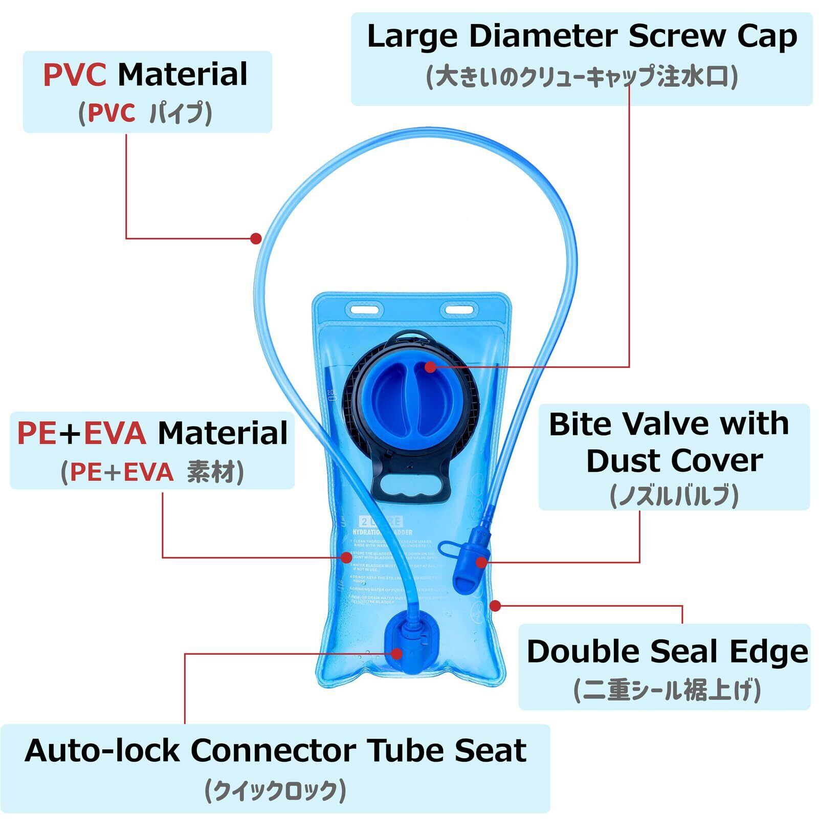 高品質材質 - - ハイドレーションパックの本体はPE+EVA、吸い口はTPEを採用していて、BPAフリー、ゴムの臭いも抑えられています、環境にやさしいです