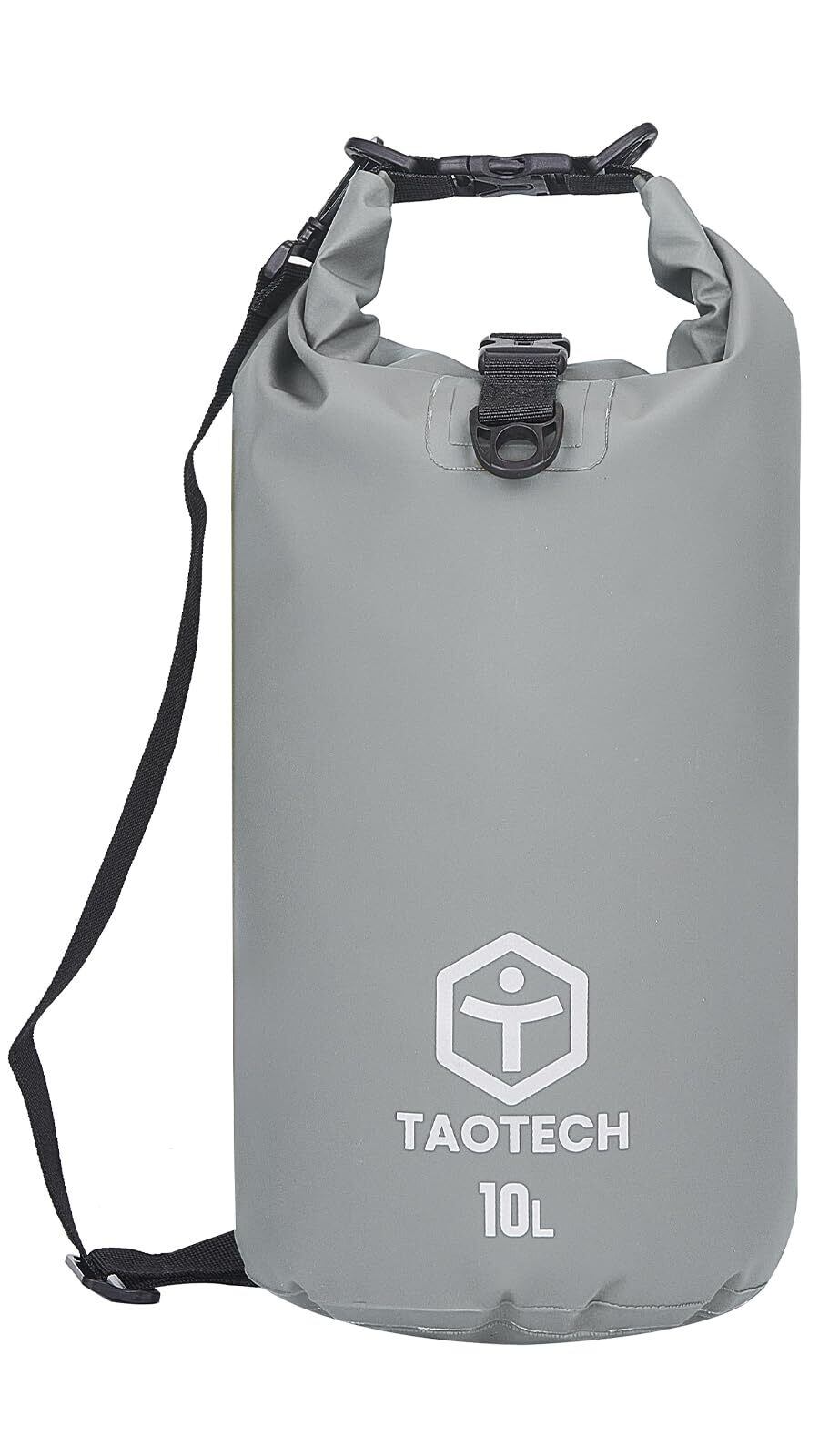 TaoTech 筒型 防水バッグ ドライバッグ 防水 ドラム型 スポーツバッグ アウトドア 海 プール 川遊び 釣り スノーボード 男女兼用(グレー, 10L)