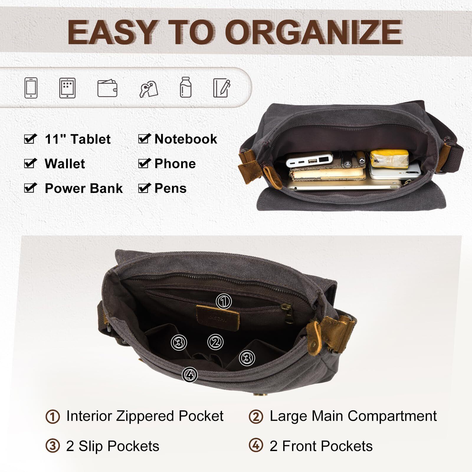 [Vaschy] 帆布 ショルダーバッグ メンズ 縦型 メッセンジャーバッグ 斜め掛けバッグ ビジネスバッグ 通学 通勤 アウトドア