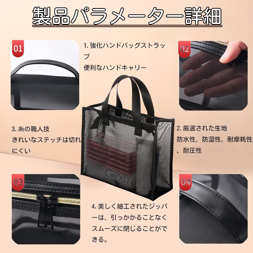 【セット内容】:ナイロンネットハンドバッグ*1+ナイロンネットミニトート*1、サイズ:28cmx23cmx12cm+18cmx10cmx6cm、材質:ナイロンネット+メタルジッパー、カラー:ブラック