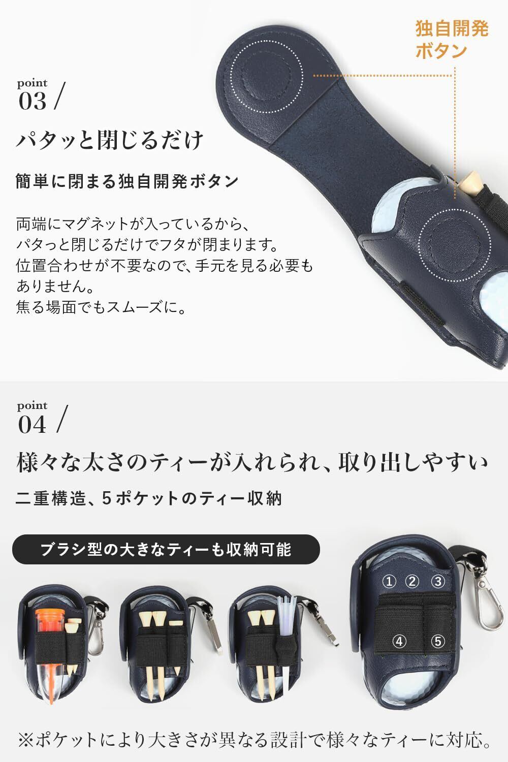 【商品スペック/サイズ/カラー展開】長さ 約90mm : 幅 約53mm : 厚み 約54mm / 重さ : 約52g 軽量かつコンパクト 素材:PUレザー(高品質合皮)全3色展開。 付属品:ティー3本、グリーンフォークは付属しません。