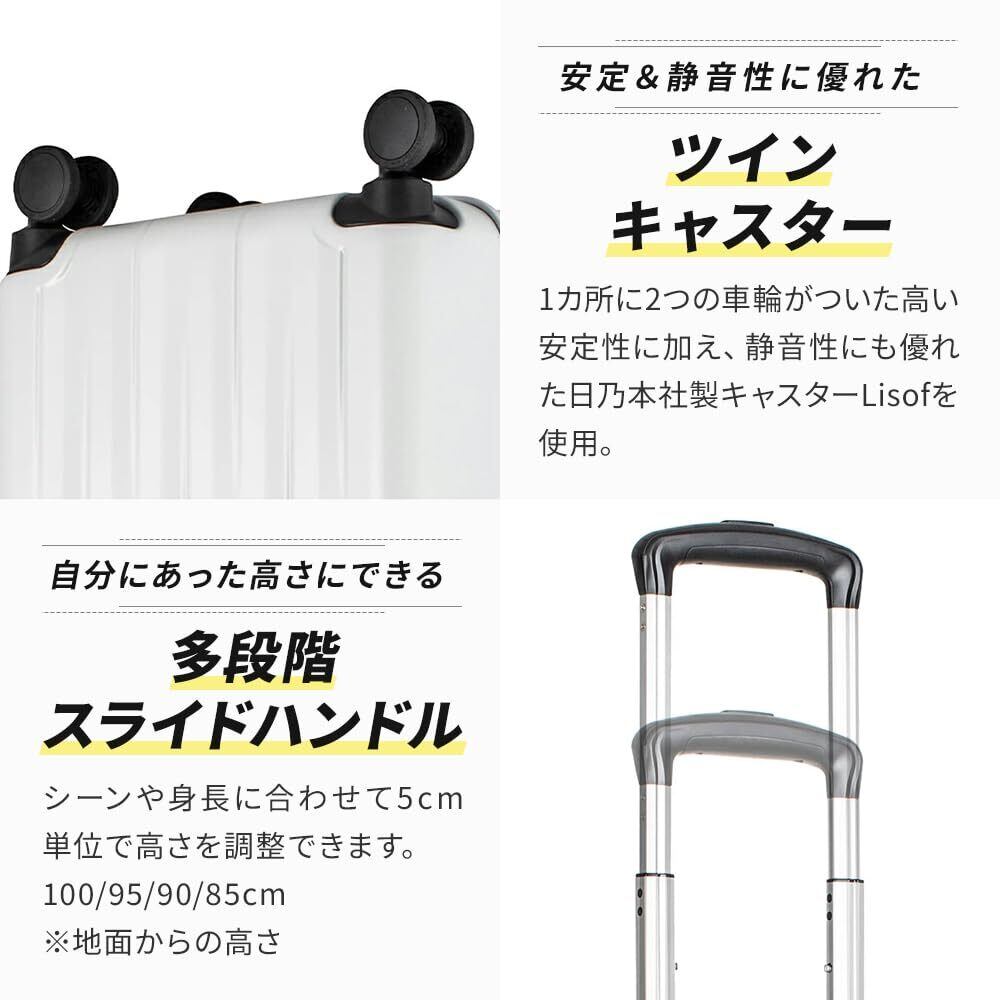 ■【拡張機能でさらに収納力アップ】スーツケースの容量は、必要に応じて拡張できるため、お土産や旅行中の荷物の増加にも対応可能です。マチ付きのポケットも備えており、小物の整理も容易です。