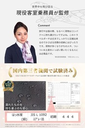 【現役CA × 日本企業のこだわり設計】世界を飛び回る現役客室乗務員のリアルな声をもとに、日本企業が企画。「丈夫さ」「収納力」「使いやすさ」を兼ね備えた、旅のプロが本気で作った圧縮ポーチです。【安心の品質検査済み】国内第三者機関にて品質検査を実施済み*。撥水性4級で濡れたものや汚れたものを持ち運ぶのも安心です。*一般財団法人 ニッセンケン品質評価センター 西日本事務所 大阪ラボ(報告書No.:DNS24-BO06619)