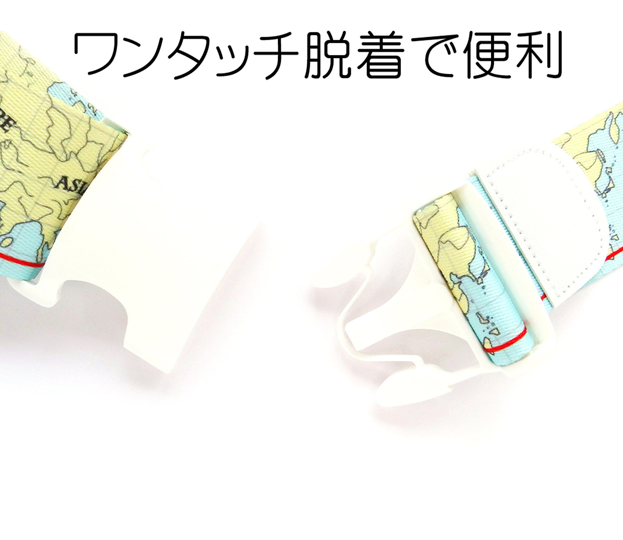 ワンタッチ スーツケースベルト ( ネーム タグ 付き) ワールドマップ ブルー