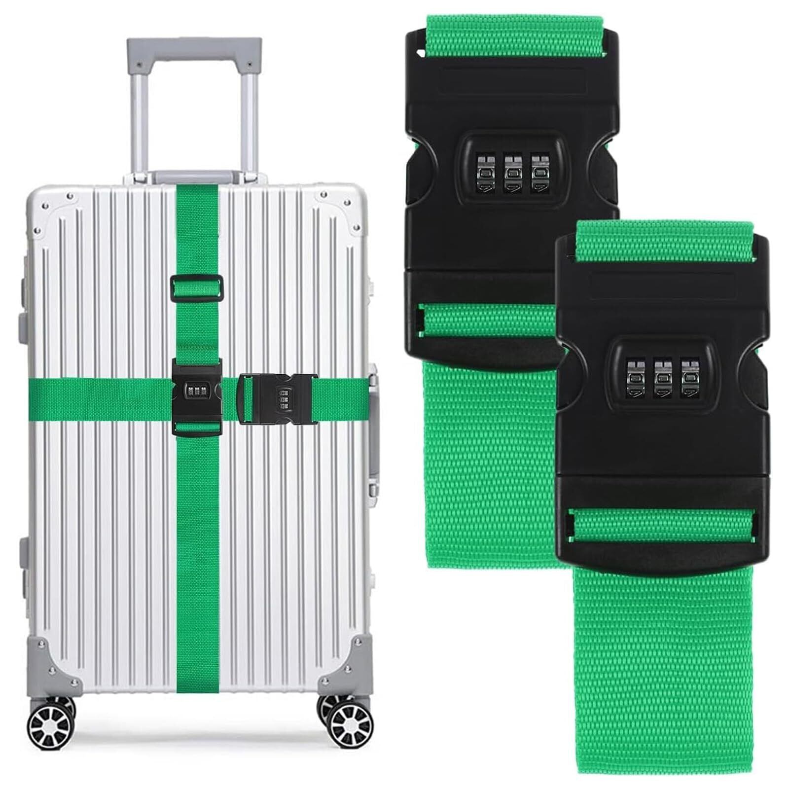 [盗難・紛失・荷崩れ防止 スーツケースベルト] キャリーケースベルト 荷締めベルト キャリーケースバンド 固定ベルト ずり落ち防止 荷締バンド 固定ベルト 固定バンド ワンタッチ式 長さ調節可能 荷物ストラップ 旅行用キャリーケースベルト 荷物固定ベルト ダイヤルロック付き 荷物梱包バンド 旅行/出張に最適 便利グッズ 地震対策グッズ (2本セット)