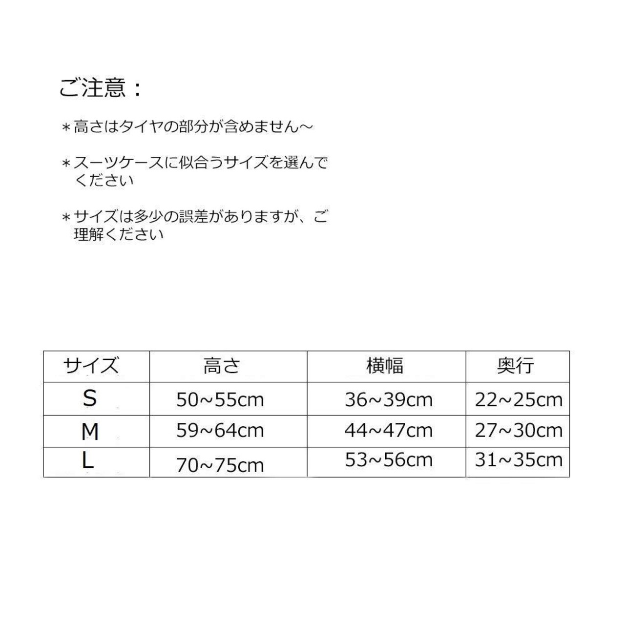 【仕様】メイン素材: PVC Sサイズ:24インチのスーツケース適用 Mサイズ:26インチのスーツケース適用 Lサイズ:28インチのスーツケース適用 ご使用のスーツケースのサイズをご確認のうえ、お買い上げください。