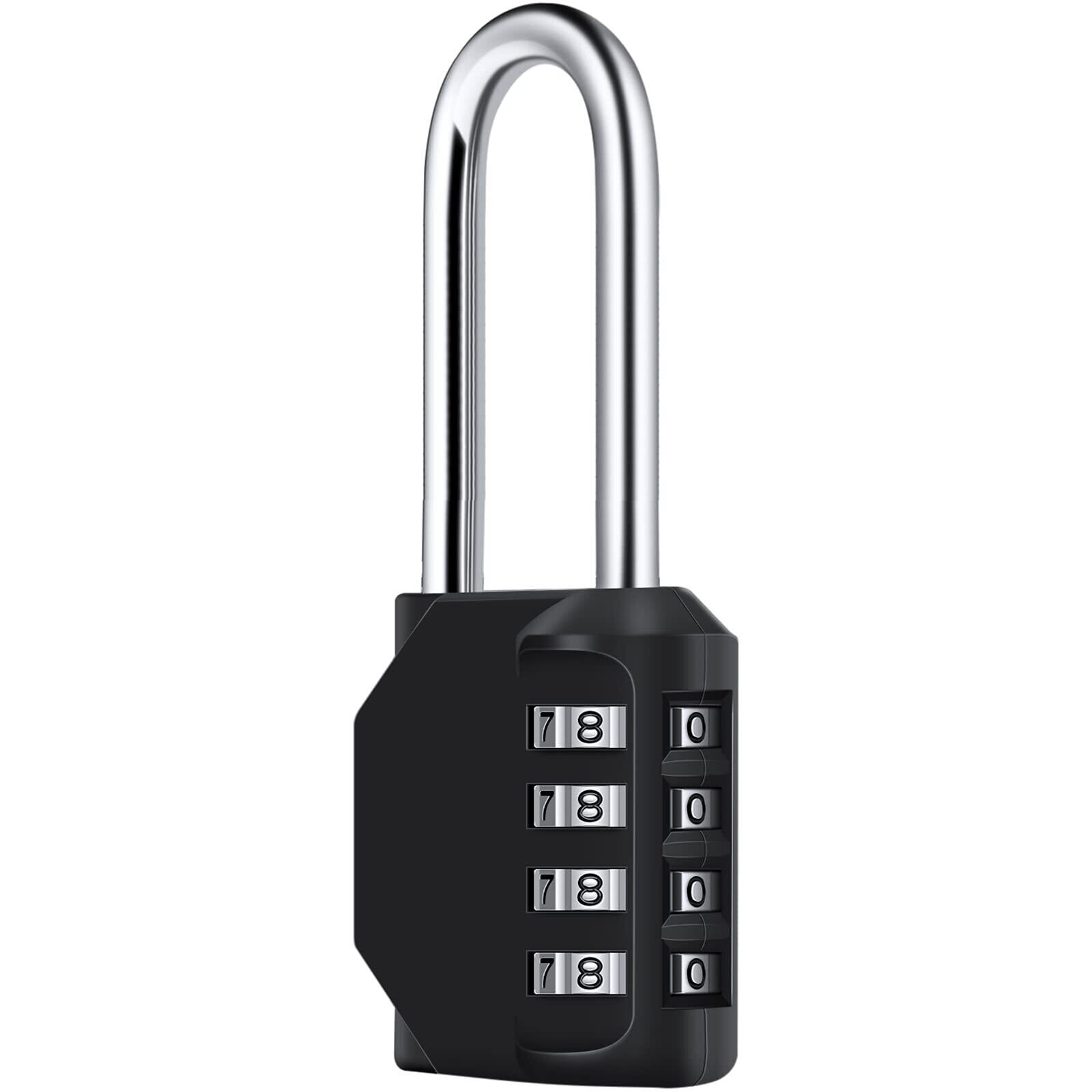Diyife 南京錠 ダイヤル式 4桁のコンビネーションロック 盗難防止 番号式 ダイヤル錠 長いシャックル 貴重品入れ 学校 ロッカー 企業 倉庫 屋外 (ブラック)
