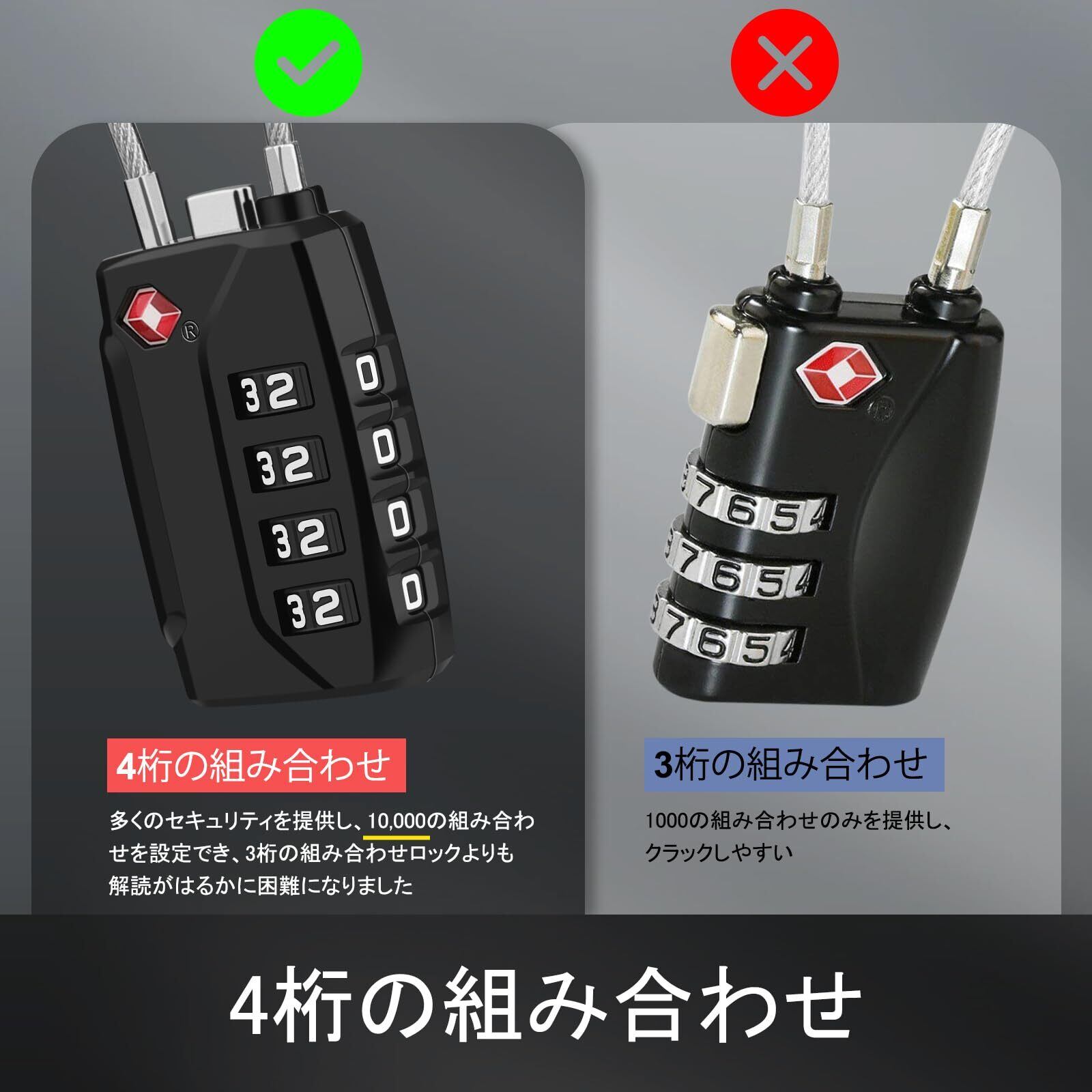 【在庫セール】TSA 南京錠 Diyife 南京錠TSA ロックワイヤータイプ 4桁ダイヤル式ロック 安心 旅行用 盗難防止 スーツケース 海外 旅行 空港 荷物スーツケース ジッパー袋 ハンドバッグ 空港 検査 (1個)
