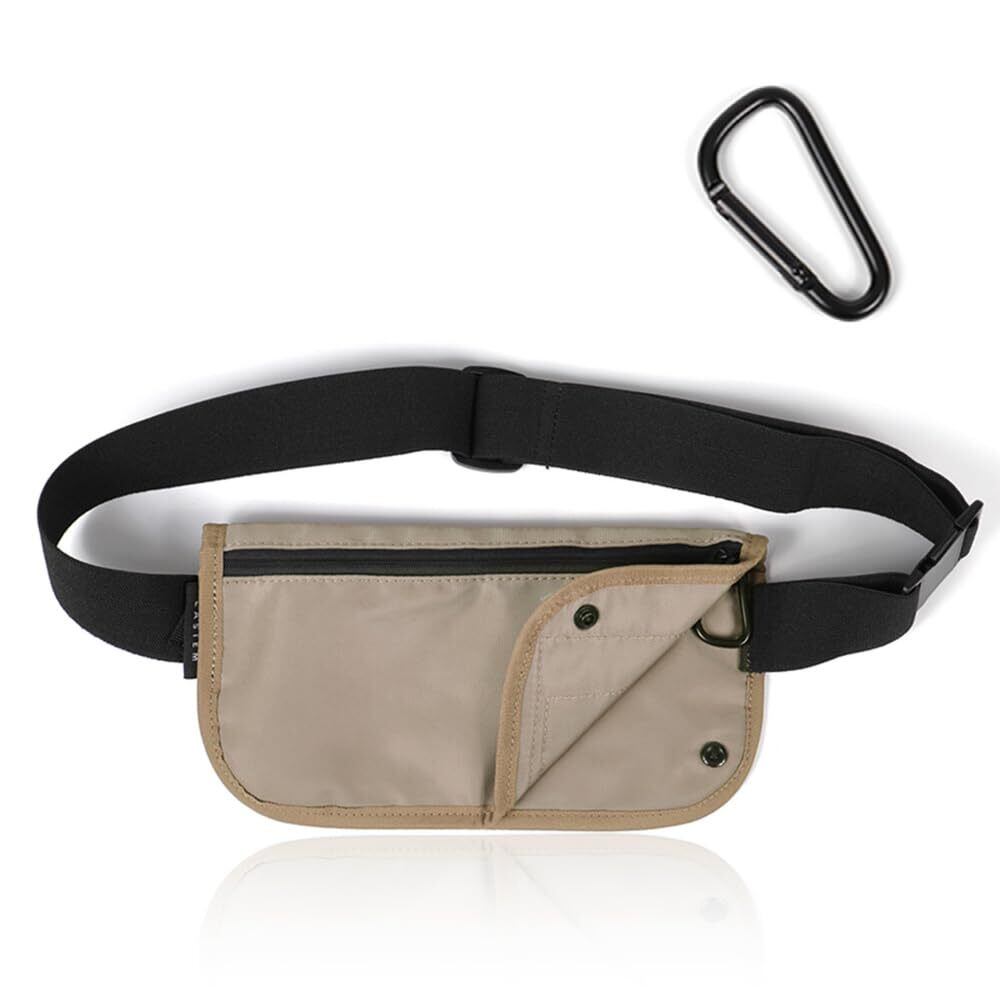 「盗難防止のサイドバックル」 セキュリティポーチ ウエストポーチ セキュリティーポーチ 旅行グッズ ウエストバッグ 超薄型 軽量 旅行グッズ ウエストバッグ スキミング防止 女性 服の下 旅行 撥水 グレージュ