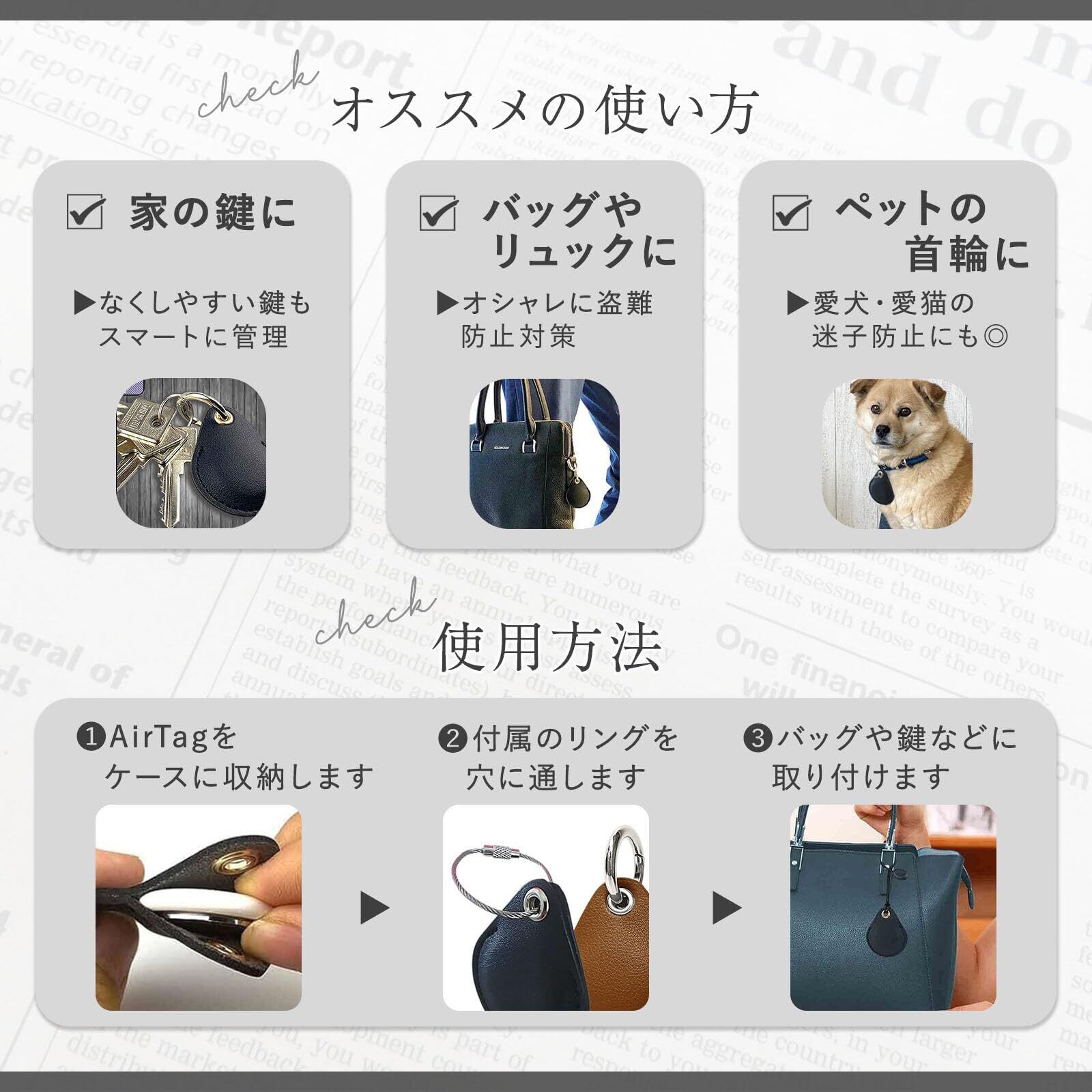 日常をより便利にするために、[enconson]のエアタグレザーケースをぜひご利用ください!希望のカラーがある場合は、備考欄へご記入ください。記載がない場合はキャンセルとなる可能性がありますので、あらかじめご注意ください。