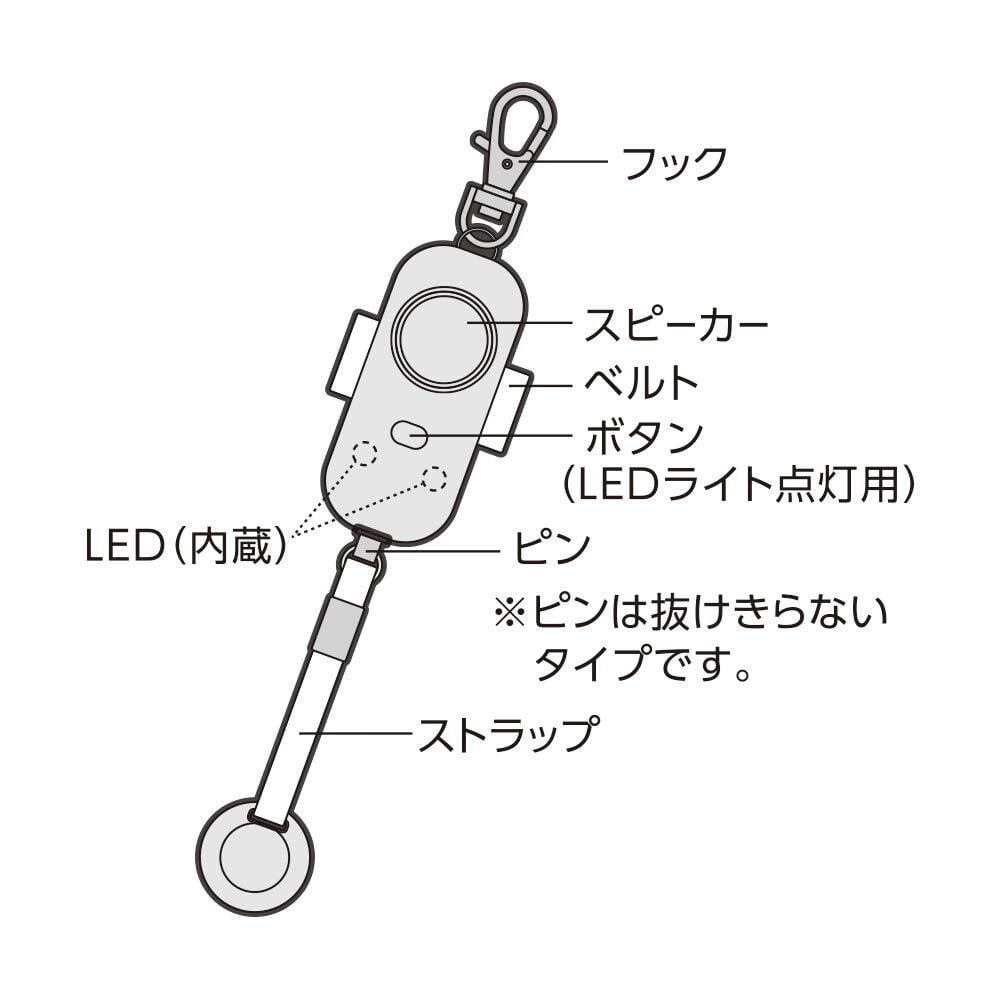 【仕様】ボタンで点灯or点滅! ブザーを鳴らすと同時に点滅!ストラップは無くなる心配がない抜けきらないタイプ!