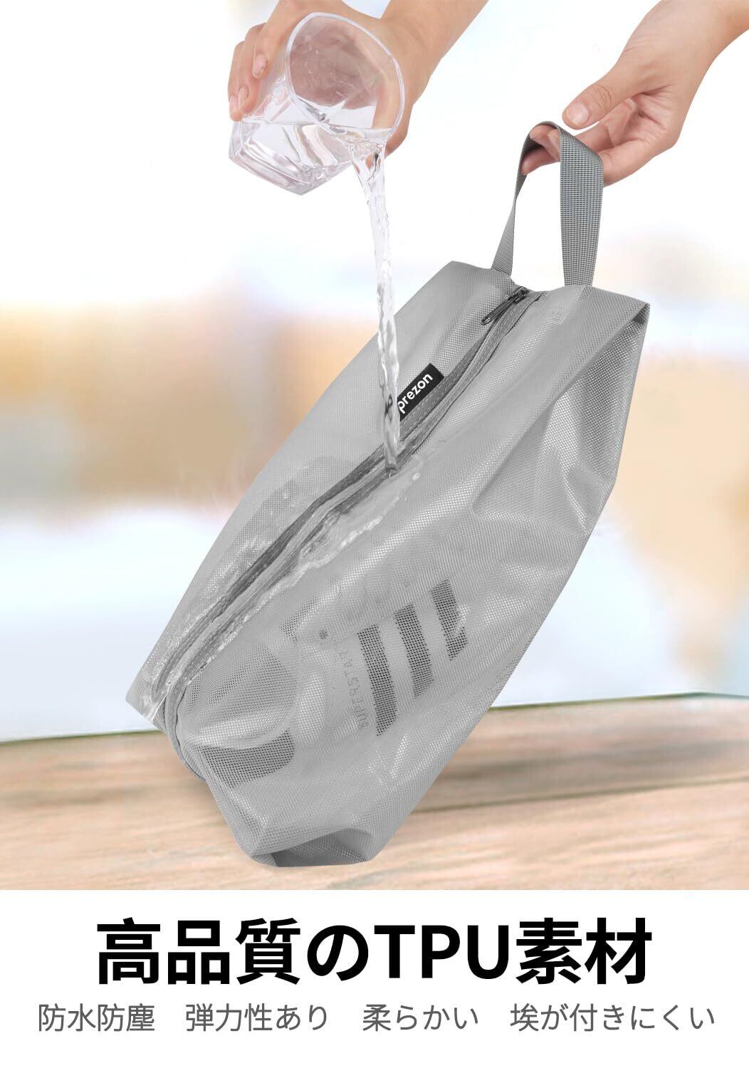 ■【軽量&防水設計で安心!】このprezonシューズケースは、軽量素材を使用し、持ち運びの際の負担を軽減。また、防水機能が備わっているため、雨の日でも安心して靴を収納できます。日常使いや旅行時に最適の一品です!