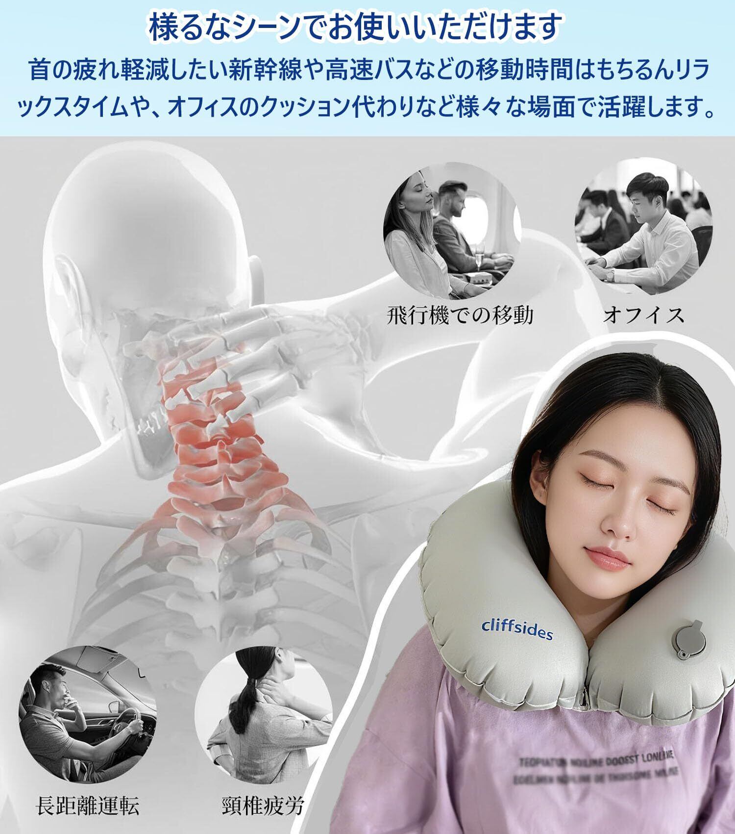 ■【軽量&コンパクト設計!】Cliffsidesのネックピローは、超軽量で持ち運びに便利なコンパクトデザインです。飛行機や新幹線での移動はもちろん、ちょっとした旅行やお昼寝に最適なアイテムです。手動で簡単に膨らませることができるので、使いたい時にすぐにご利用いただけます!