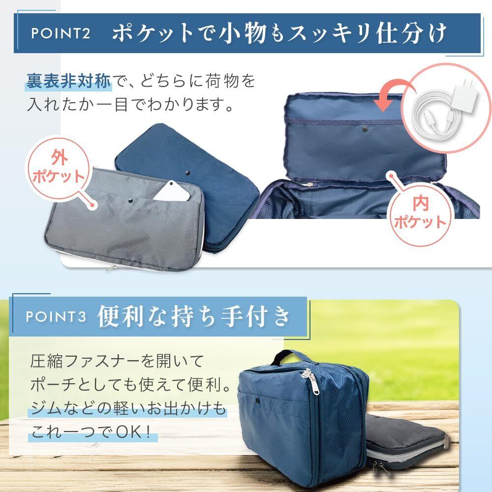 \「ひるおび」で紹介/ トラベルポーチ YKK【技術でムダなく収納】両面収納 圧縮袋 旅行 圧縮ポーチ 旅行用圧縮袋 衣類 撥水 洗濯機洗い可 LASSE MOA (ネイビー, M)