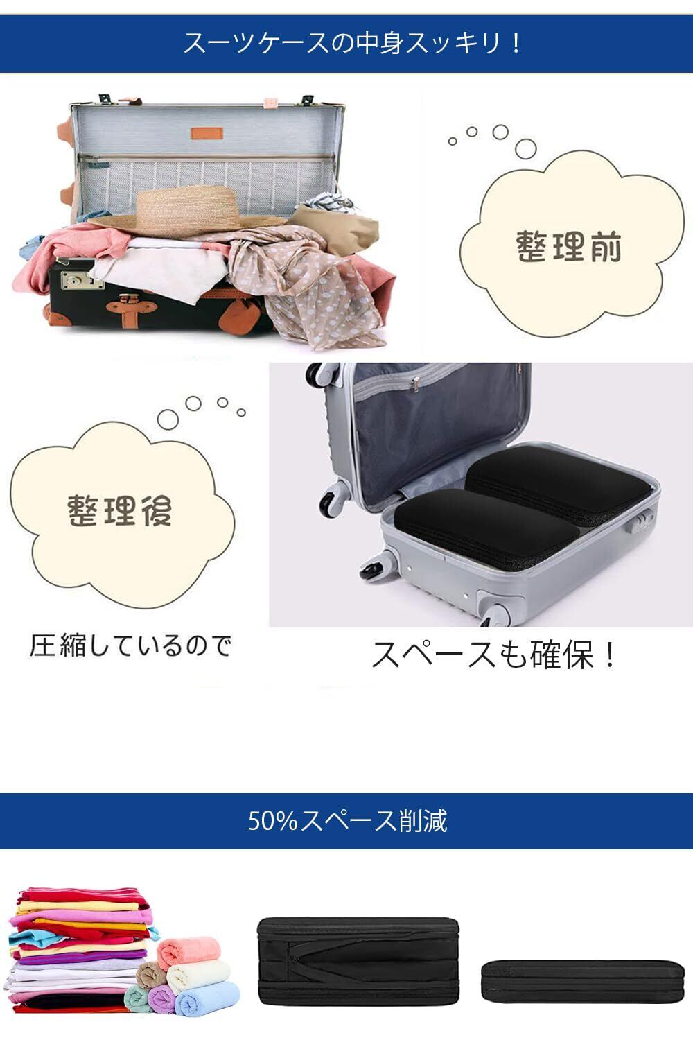 【ファスナーで簡単圧縮】 通常の圧縮袋とちがって、圧縮用の吸引機などがいらないため、その機能というのが、ファスナーにを閉めるだけでOKの超カンタン圧縮機能!見た感じは小さい圧縮バッグですが、実際は多くの衣類が入ります。旅行、出張やホテル泊などに最適な収納バッグです。【】何か問題がございましたら、お気軽にメールよりご連絡ください、の営業担当は至急に対応いたします。
