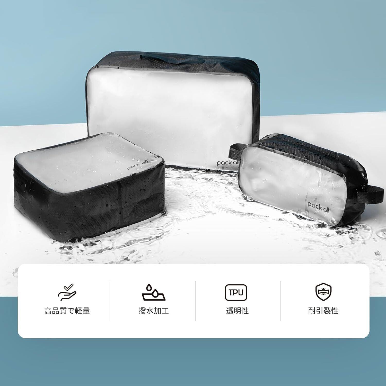 pack all トラベルポーチ 半透明TPU素材 ナカ見え シームレス 出張 トイレタリーバッグ 持ち運び 衣類収納 撥水加工 アウトドア コスメポーチ 登山 水泳 ガジェットポーチ(L)