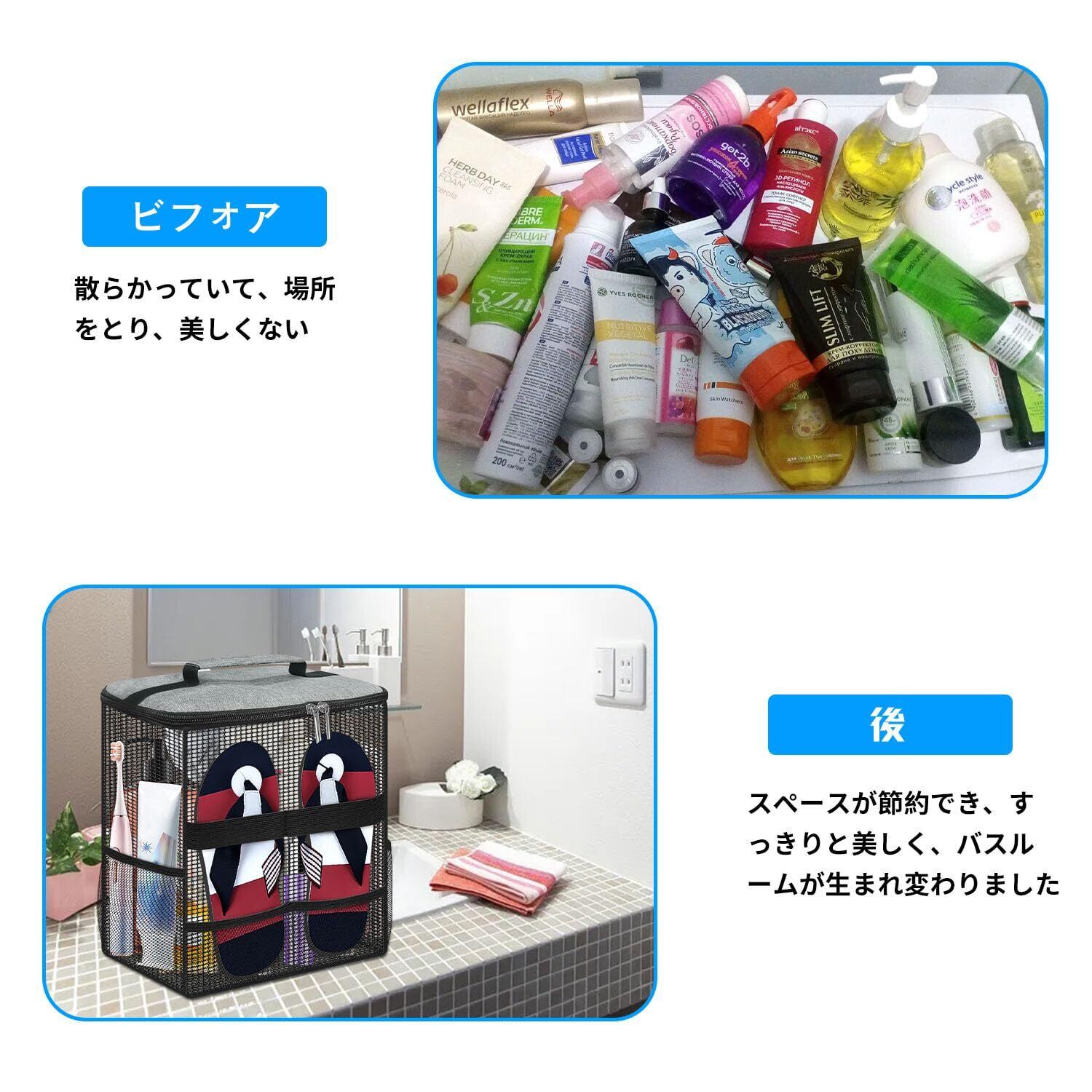 【防水&速乾】- 樹脂メッシュクロスは通気性があり、底部のメッシュデザインにより、シャワーを浴びる際に水の危険なしに簡単に水を通すことができます。 また、シャワーキャディバッグに通気を提供し、中身をドライに保ちます。 Instant Drainage Desig、速乾技術により、バッグは濡れた理由で臭いがしません。 メッシュシャワーバッグはコンパクトで、どこにでも持っていくことができ、旅行をより楽しくします。