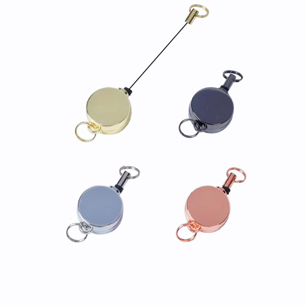 [TRkin] リールキーホルダ4個セット亜鉛合金リールキーホルダ伸縮自在チャックリールロープキーホルダ用