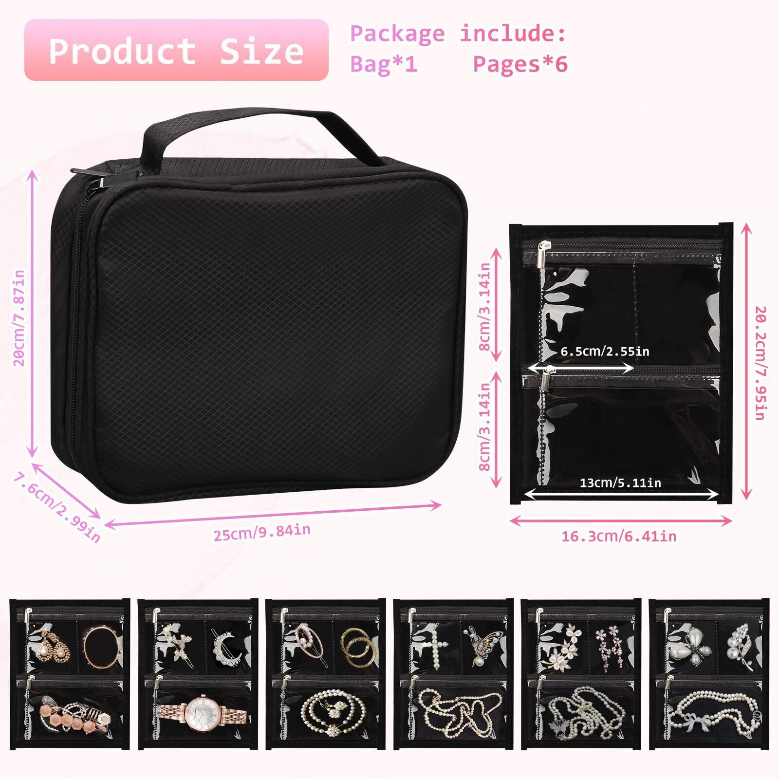 mumisutoアクセサリーポーチ収納 ジュエリーポーチ旅行用 指輪 ネックレス 腕時計 収納コンパクト 持ち運び36ポケット 6面仕切り 透明窓付き プレゼント (ブラック)