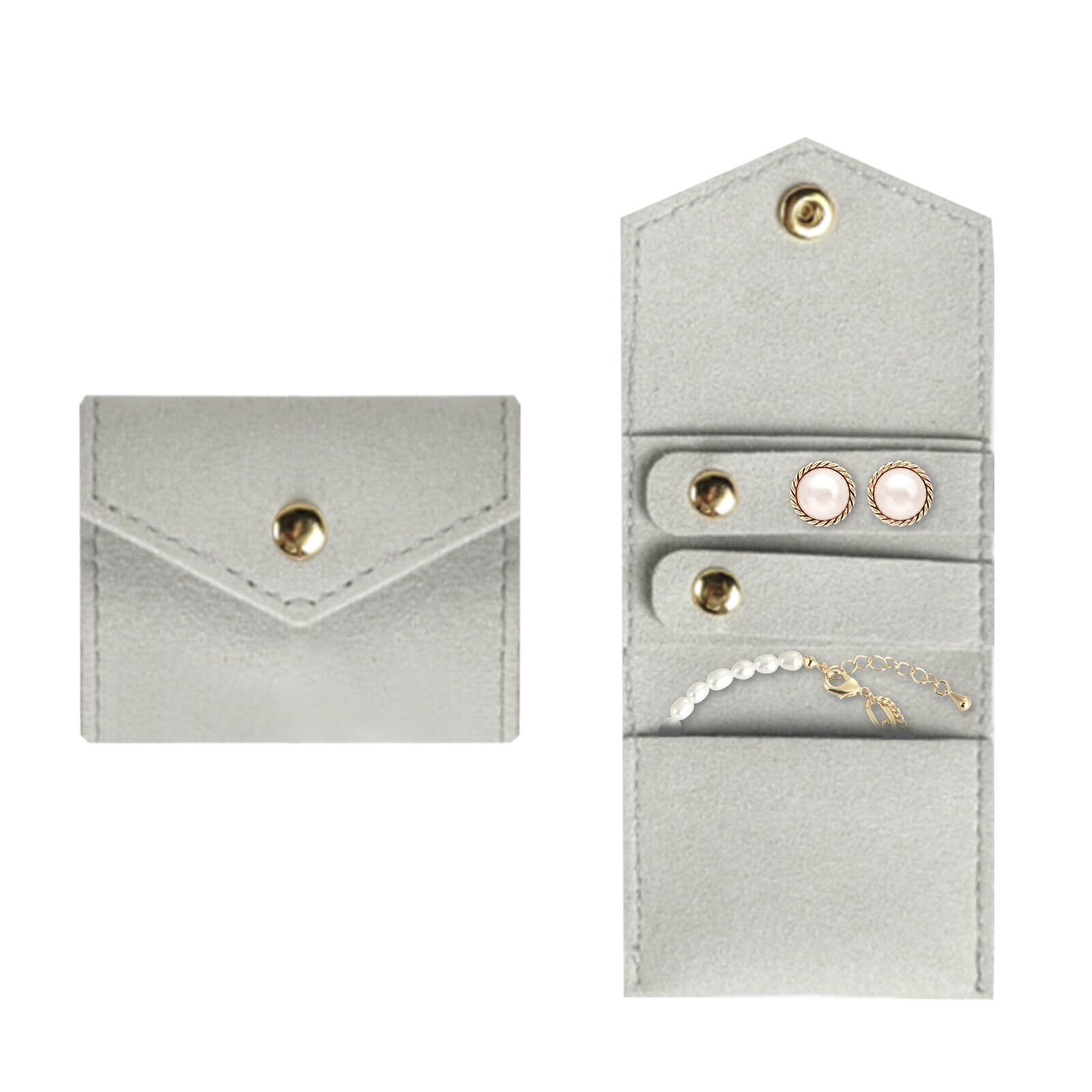 シンプルでありながらエレガントなデザインのこのグレーの上品なジュエリーバッグは、特別な人への贈り物に最適です。アクセサリーの保護に最適で、特別な日のギフトにも最適です。コンパクトなデザインでありながら、大切なアクセサリーを守りながら使えるのが嬉しいポイントです。このコンパクトなジュエリーオーガナイザーをバッグに入れておけば、急な外出や宿泊が必要になったときでもアクセサリーを安全に保管できます。この手のひらサイズのジュエリーオーガナイザーは、わずか 11 グラムと非常に軽量です。バッグに入れても重く感じません。毎日持ち運ぶのに便利で、気軽に取り出して使えます。