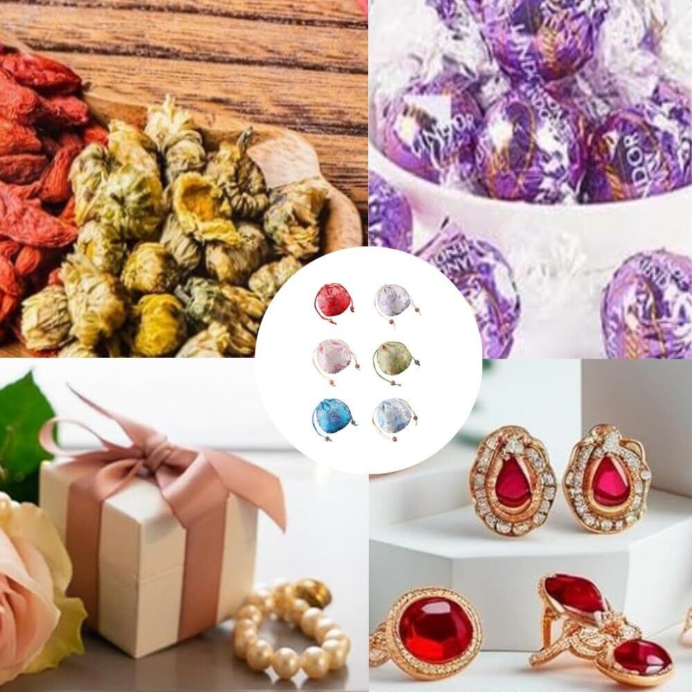 Loopunk 中国の巾着袋 6枚入り 6色 ジュエリーポーチ アクセサリー保存 多機能 ギフトバッグ 小物入れ ラッピング プレゼント用収納袋小物入れ 持ち運び便利 ドローストリングデザイン