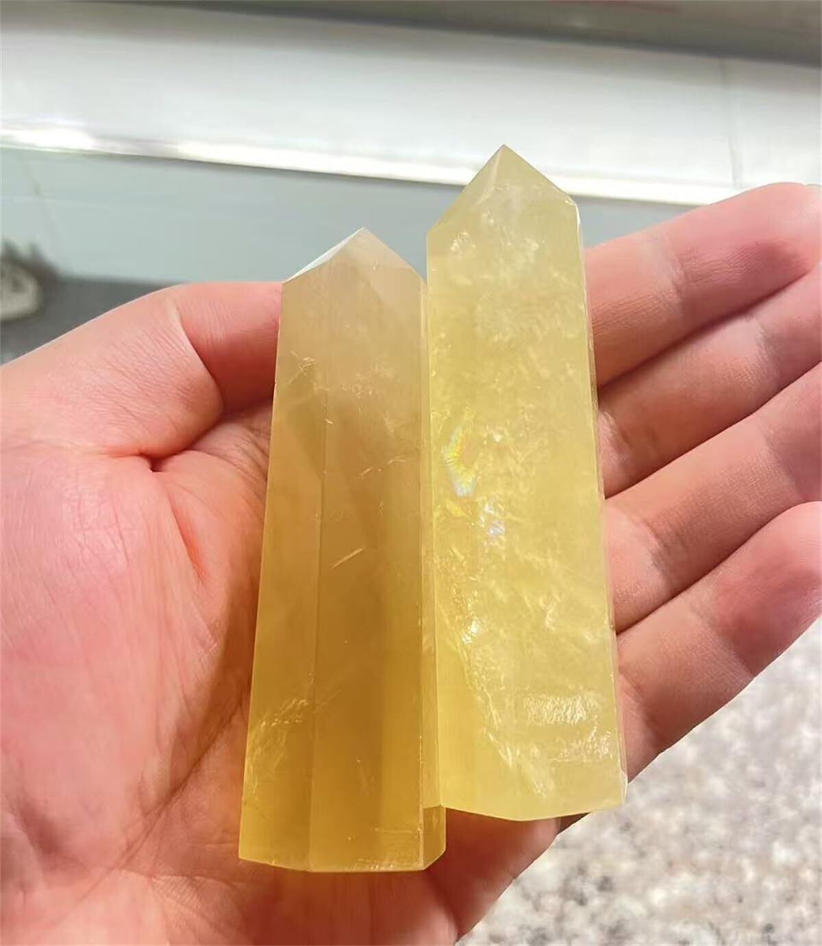 水晶の柱 六角柱 黄水晶の柱 クリスタル 開運浄化 インテリア パワーストーン 開運グッズ 風水アイテム 1本セット 80-90mm