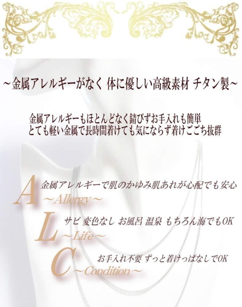 ■体に優しい高級素材チタンチェーン【1】金属アレルギーもほとんどなく、錆びずお手入れも簡単 【2】とても軽い金属で長時間着けても気にならず着けごごち抜群で野球、スポーツ選手などアスリートに人気