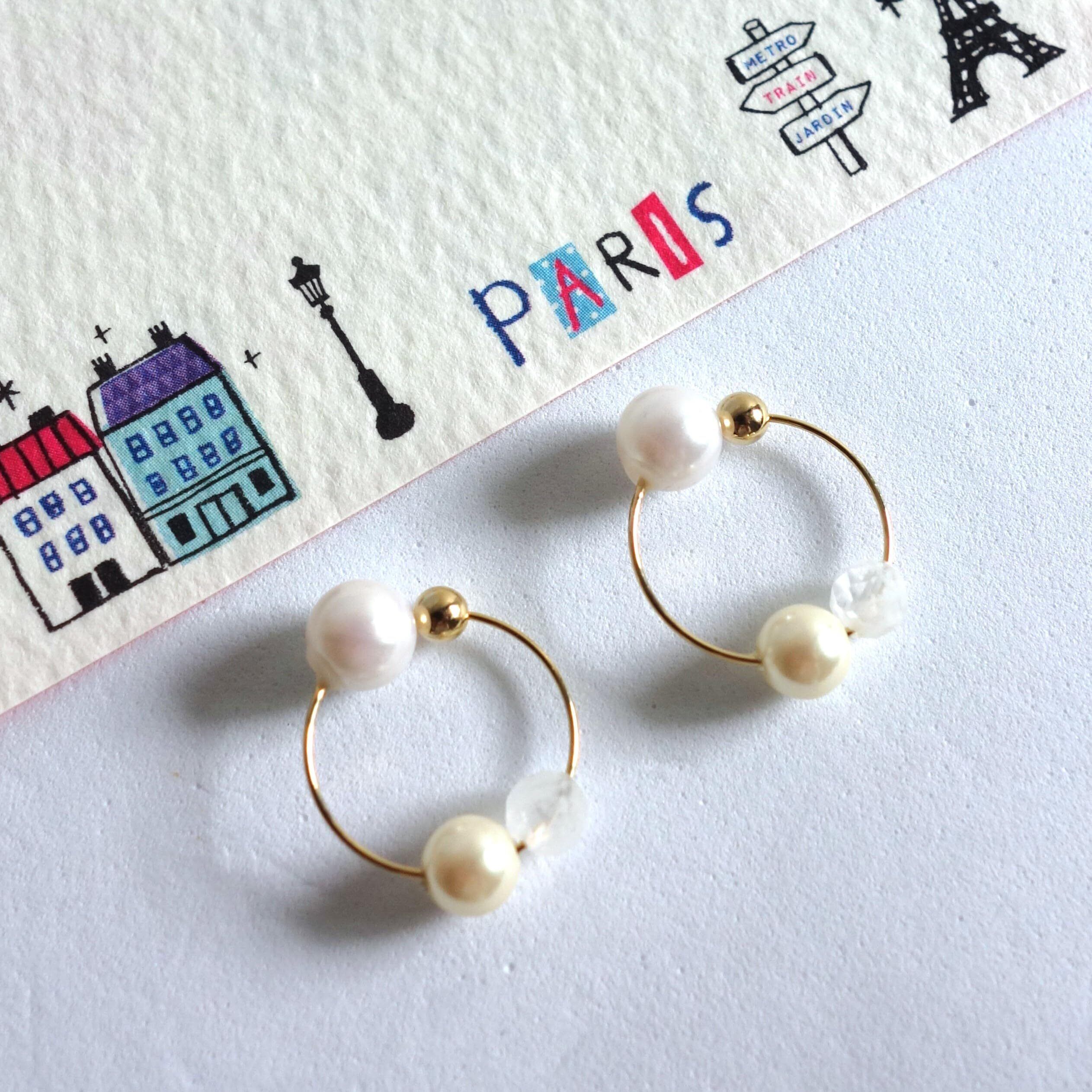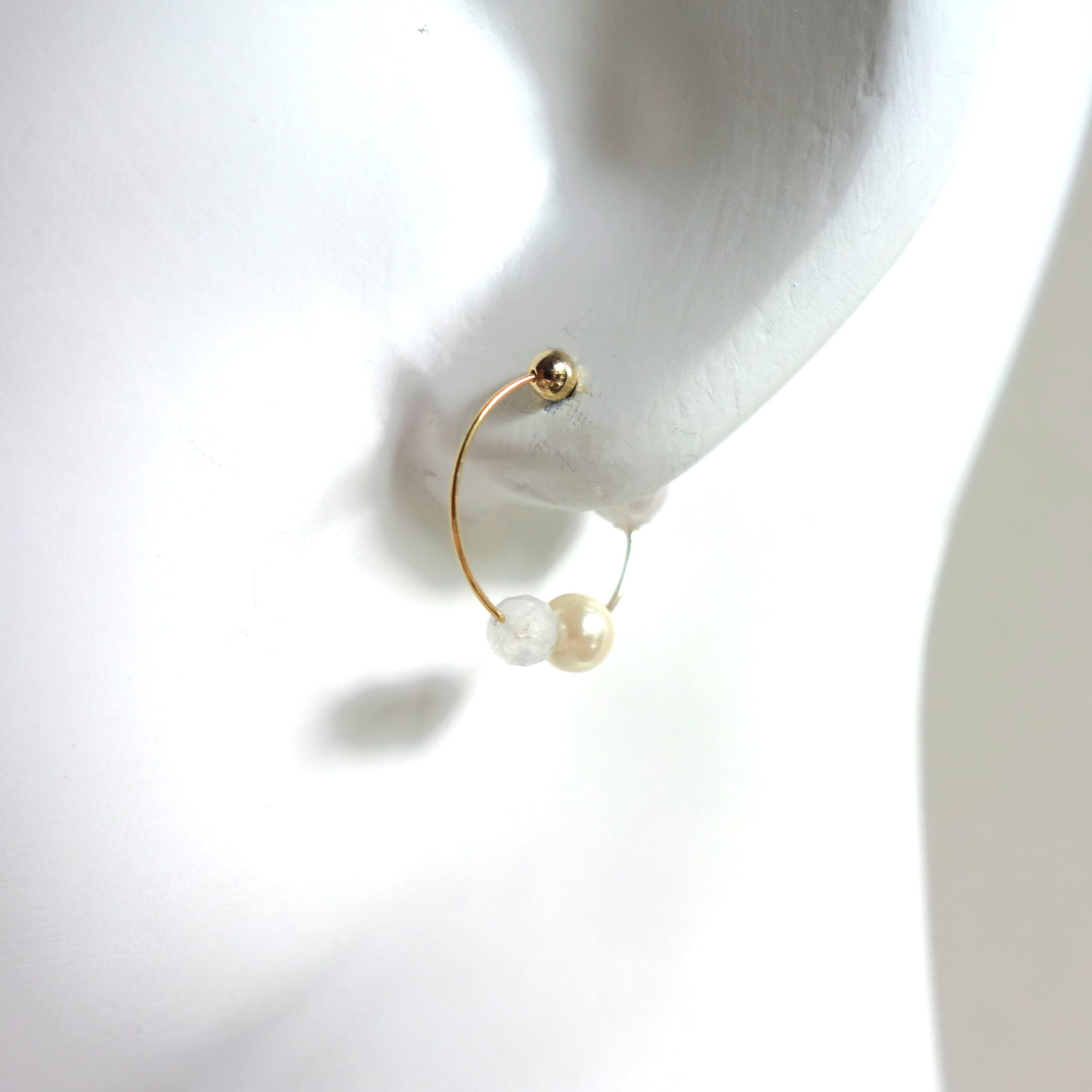 【特価セール】天然石 と パール の ツイン フープ イヤリング