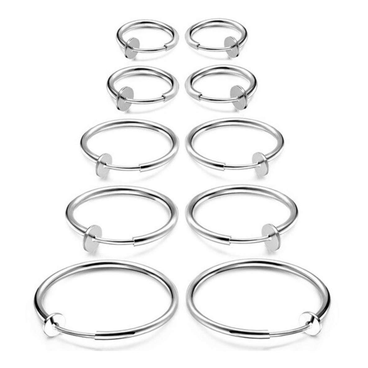 ALOHAMONI (アロハモニ) フェイクピアス イヤーカフ フープピアス イヤリング 両耳 5ペア 10個セット ゴールド シルバー ブラック フープ リング ノンホール レディース メンズ ユニセックス 挟むだけ 簡単 装着 (シルバー)