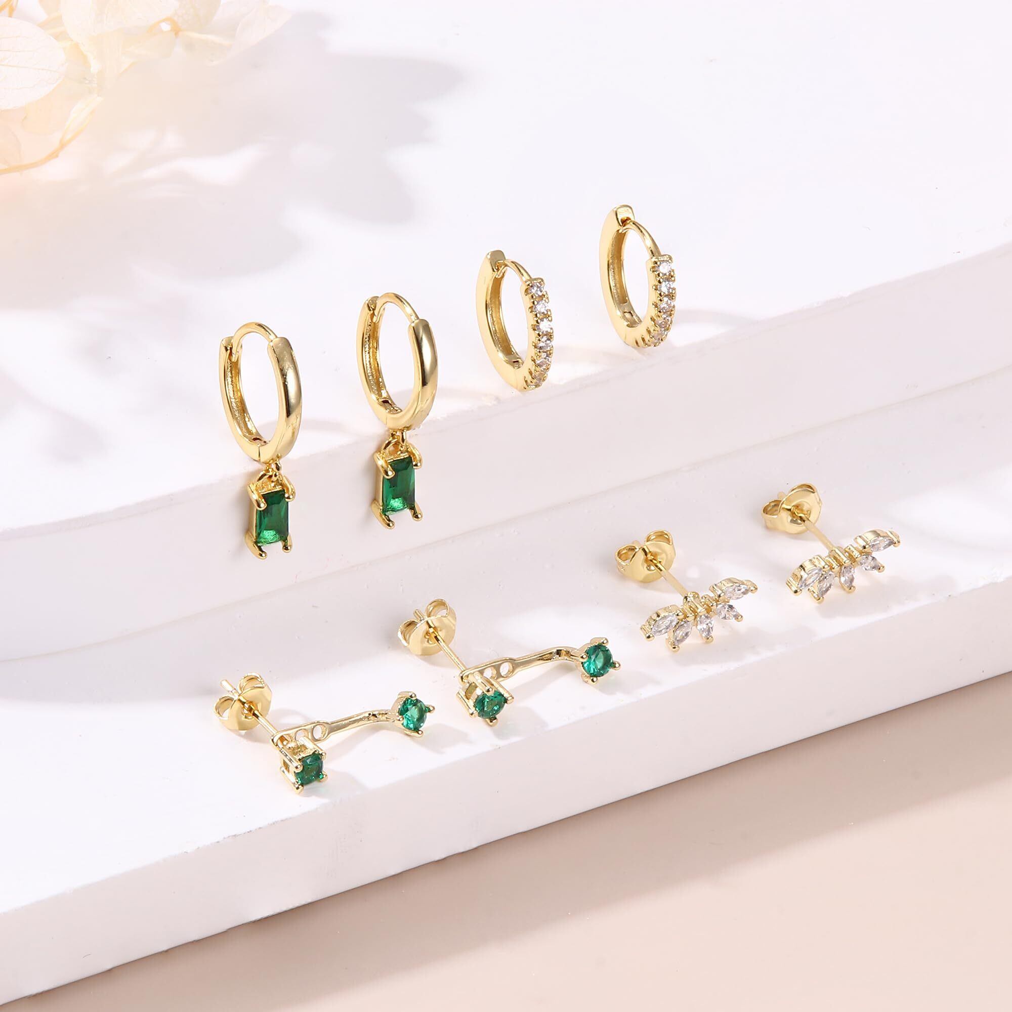 ORAZIO[オラジオ] 4ペアセット ピアス レディース 人気 フープピアス スタッドピアス ステンレス 金属アレルギー対応 ピアス つけっぱなし 星 ハート ジルコニア 重ね着け 軟骨ピアス (14kゴールド-グリーンCZ)