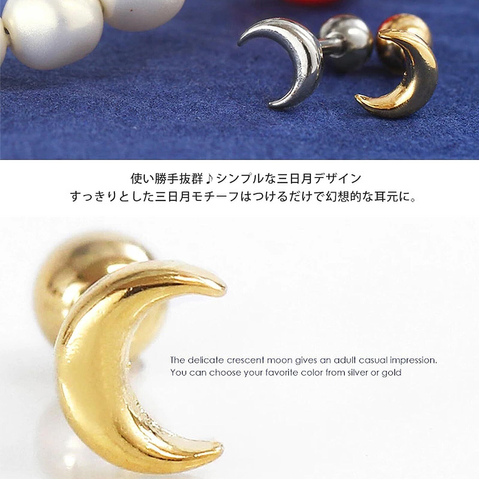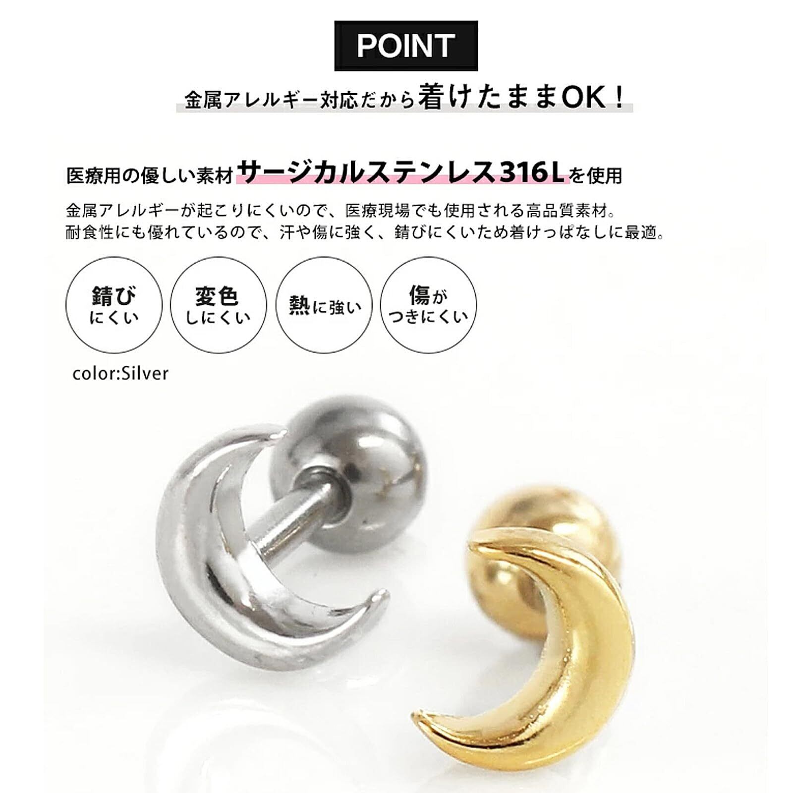 【 可愛さとお洒落さ 】 月の持つスタイリッシュなデザインは小さくてもさりげなく印象的に!ゴールドとシルバーの2色展開でブルべでもイエベでも似合うカラーをご用意!年中使えてつけっぱなしにもできる素材です!