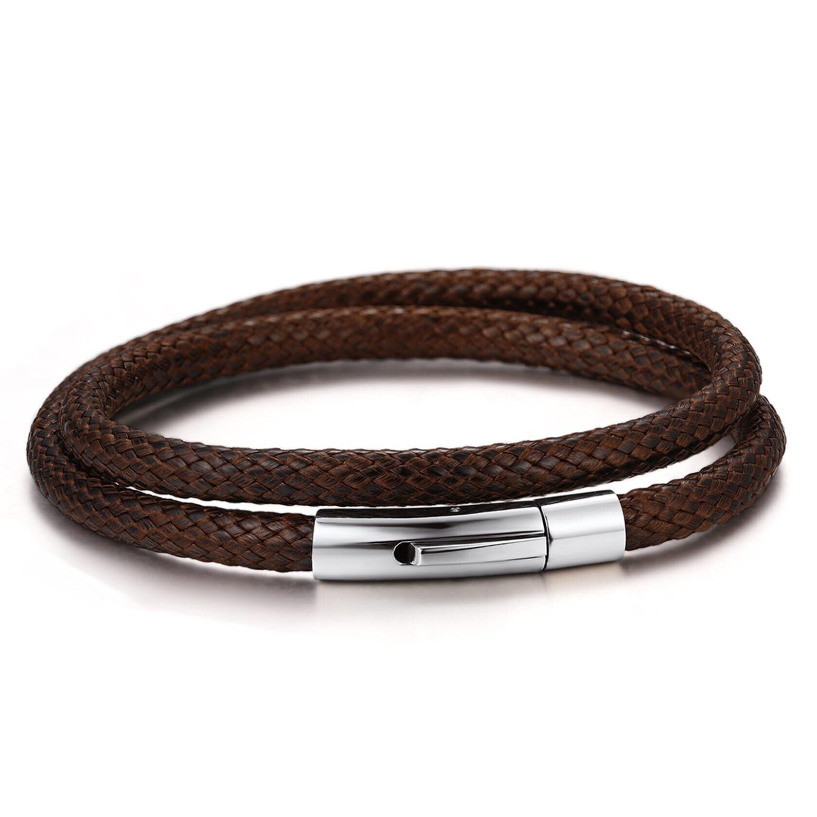 [ChainsPro] 編み込み ブレスレット メンズ 人気 2連 つけっぱなし 刻印可能 名入れ ブラック レディース アクセサリー
