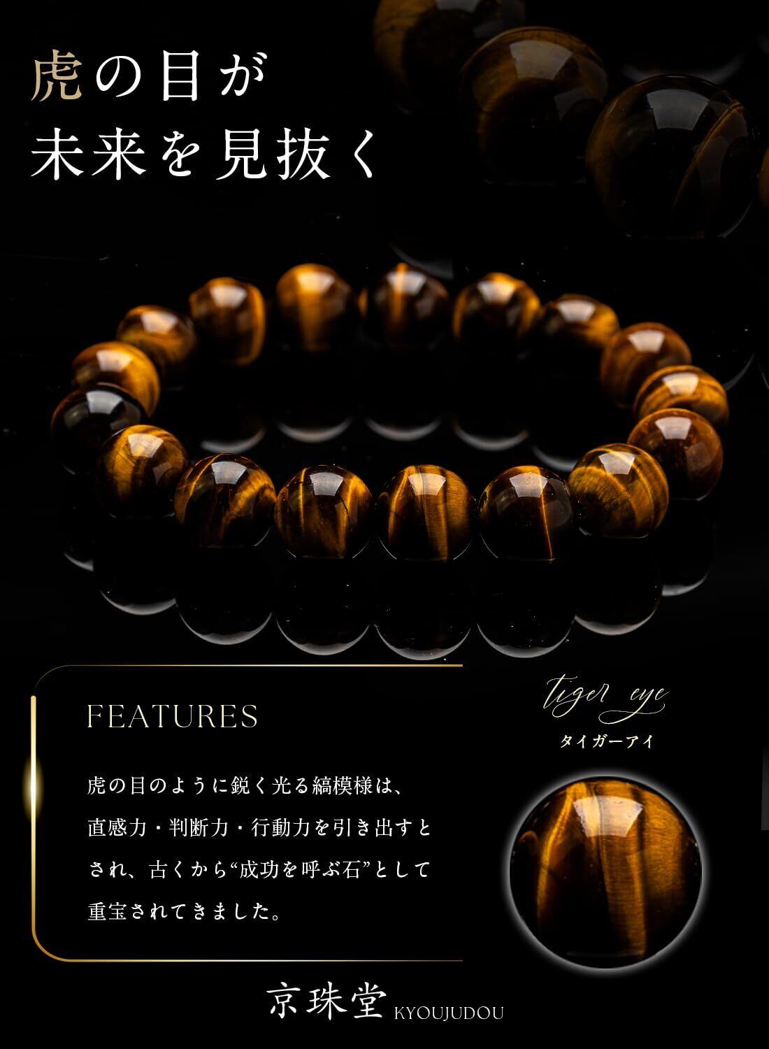 ■【高品質な天然石で安心の着け心地!】この【京珠堂】タイガーアイブレスレットは、上質なAAAグレードのタイガーアイを使用しており、信頼性の高い品質を提供します。肌に優しく、デイリーユースから特別な日まで、安心してご着用いただけます✨