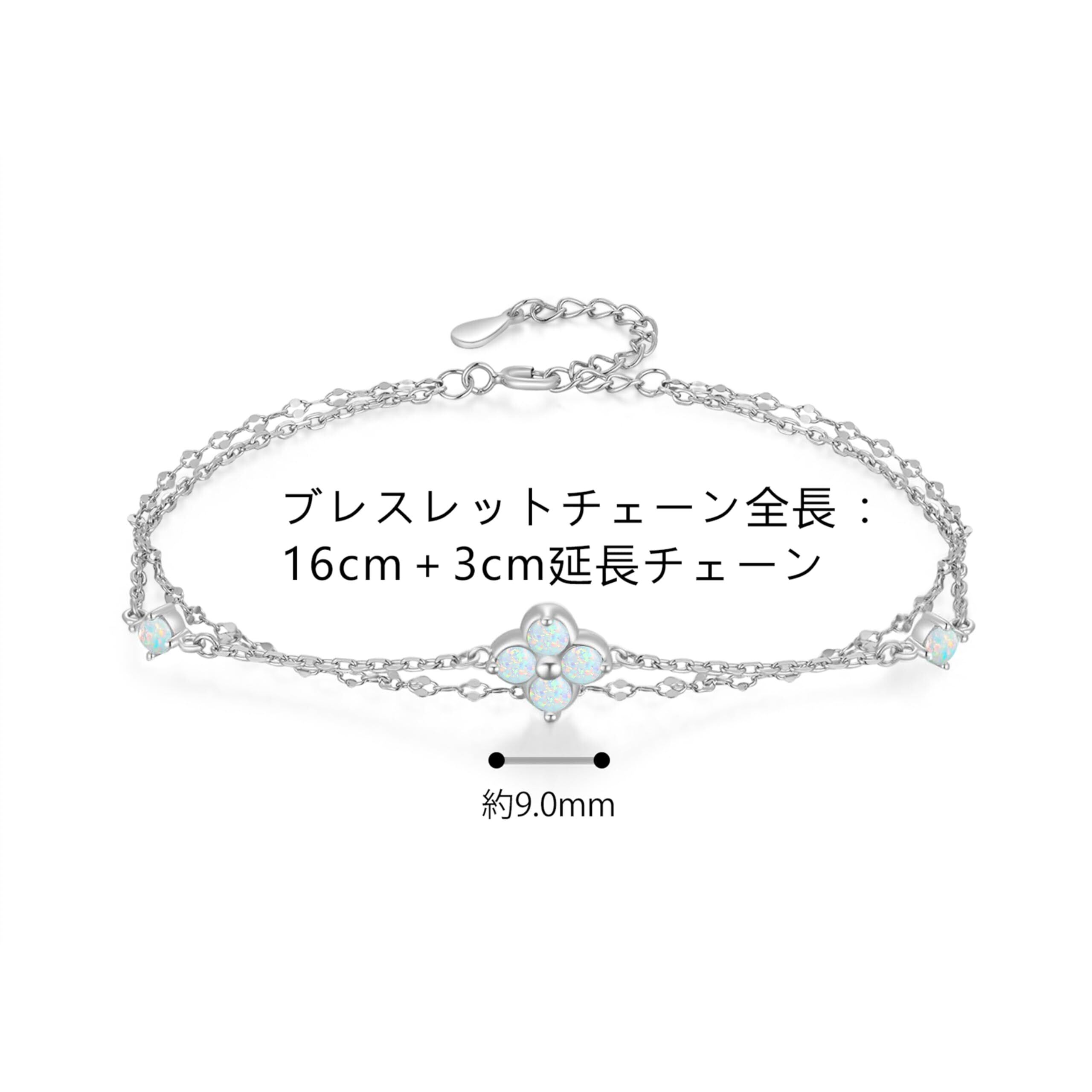 FH.bird ローズクォーツ ブレスレット レディース 10月誕生石 四つ葉のクローバー 【幸運の花】 ピンクトルマリン シルバー925 金属アレルギー対応 オパール ブレスレット 真珠 シンプル アクセサリー 妻 彼女 誕生日 プレゼント 20代 30代 40代