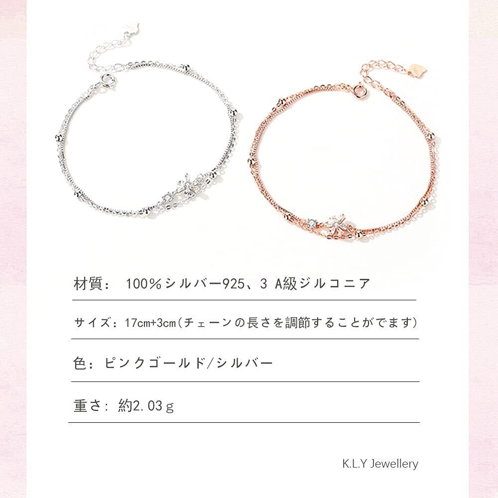 【新着商品】K.L.Y ブレスレット レディース 桜 シルバー 925 最高級ジルコニア 金属アレルギー対応 純銀製 2連 ブレスレット 人気 可愛い 誕生日 プレゼント女性 アクセサリー