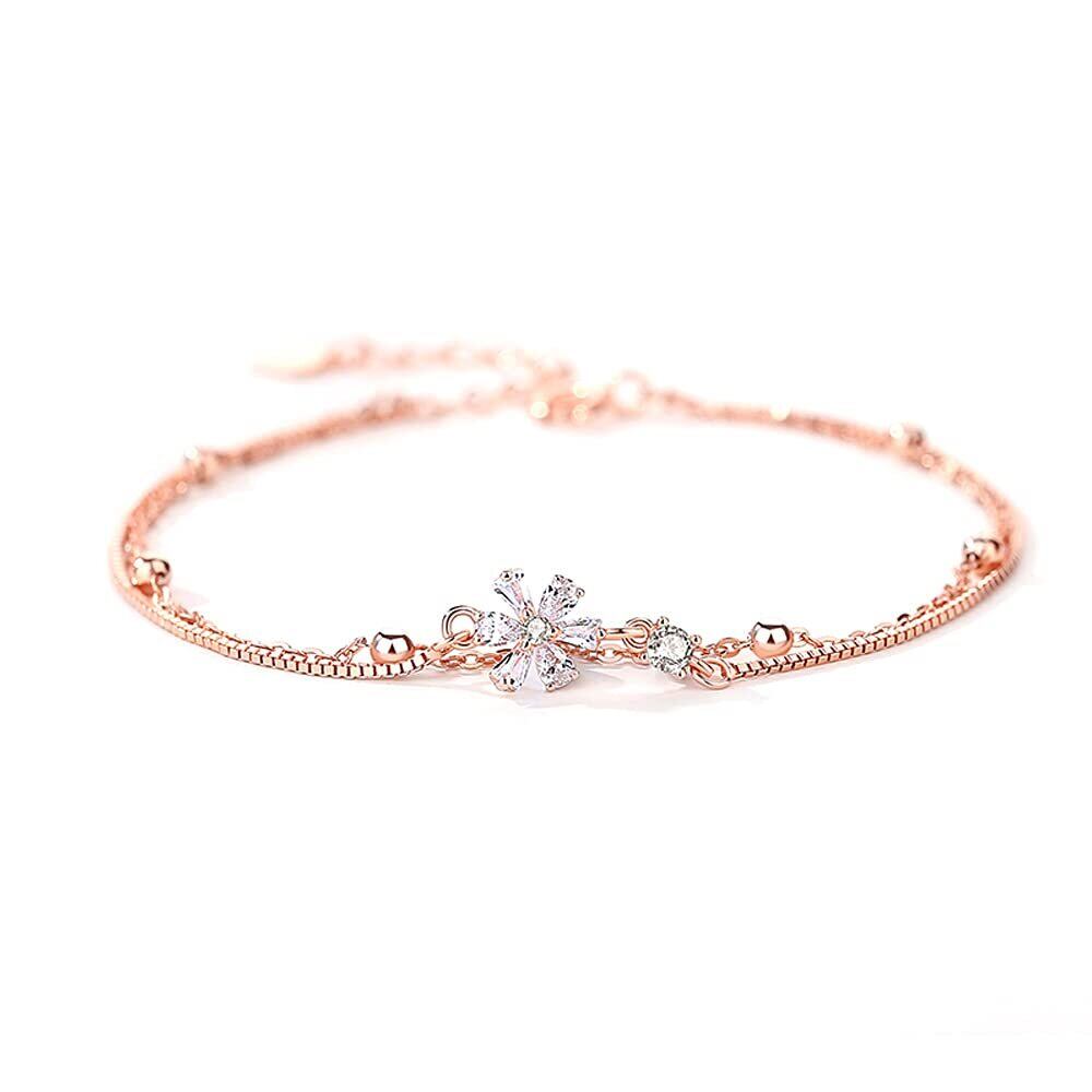【新着商品】K.L.Y ブレスレット レディース 桜 シルバー 925 最高級ジルコニア 金属アレルギー対応 純銀製 2連 ブレスレット 人気 可愛い 誕生日 プレゼント女性 アクセサリー | SmartLiving+