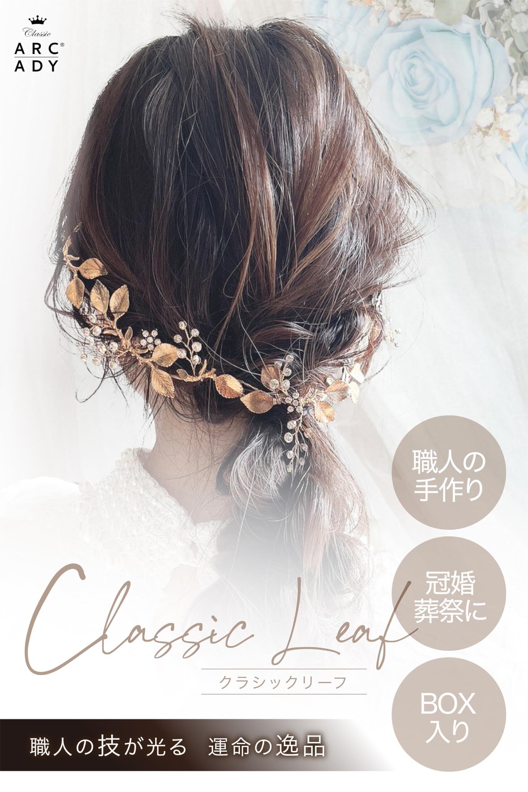 ARCADY ヘアアクセサリー 髪飾り 結婚式 ボックス入り 職人の手作り ヘッドドレス 大人 (クラシックリーフ)