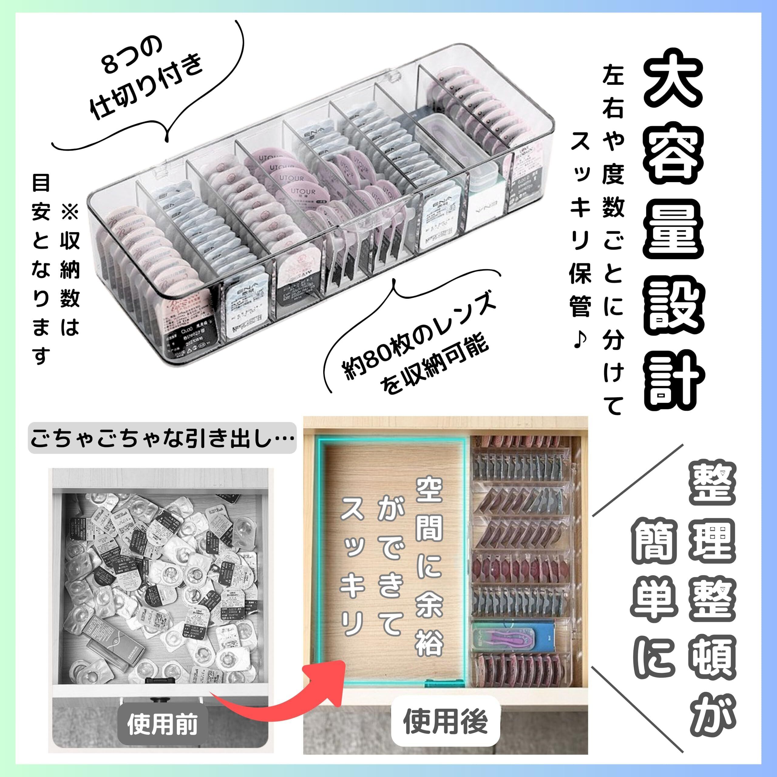 【大容量で整理整頓が簡単】 East Leafのコンタクトレンズ収納ケースは、8つの仕切り付きで約80枚のレンズを整理整頓。左右や度数ごとに分けてスッキリ保管できます。
