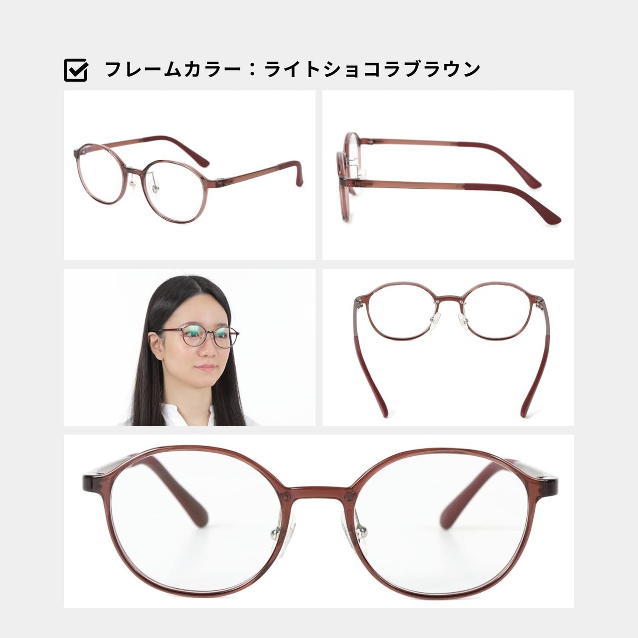 [ゆるり az limited] おしゃれ&かわいいメガネ ボストンスタイル 超軽量やわらか素材 TR-90製 レンズ付き 軽い ズレ防止 ライトショコラブラウンカラー YUAZ-504C2-NS