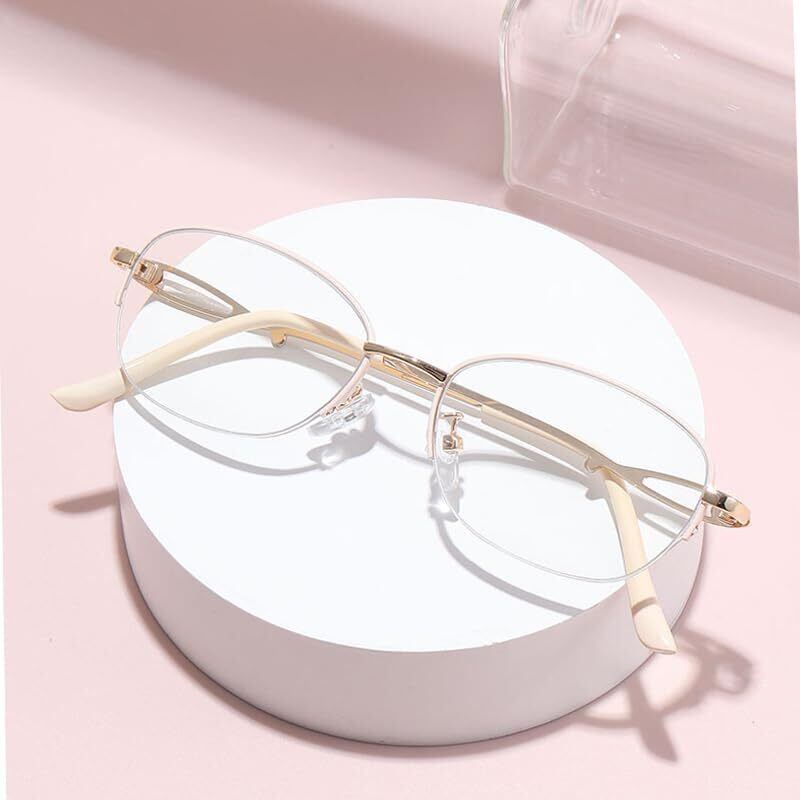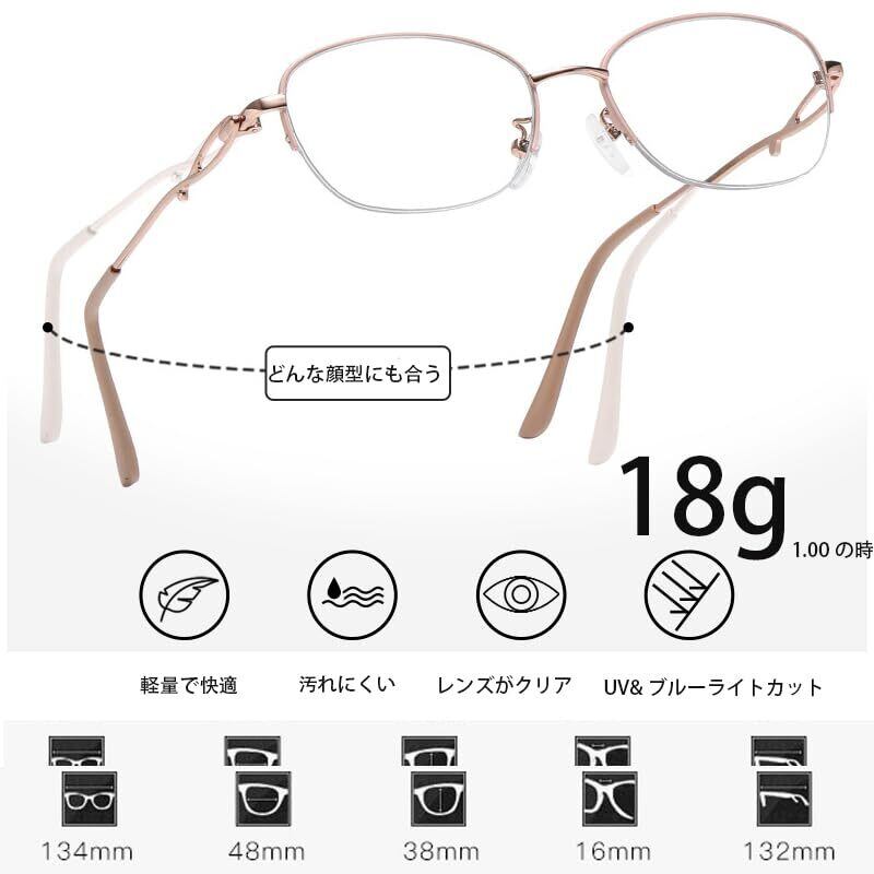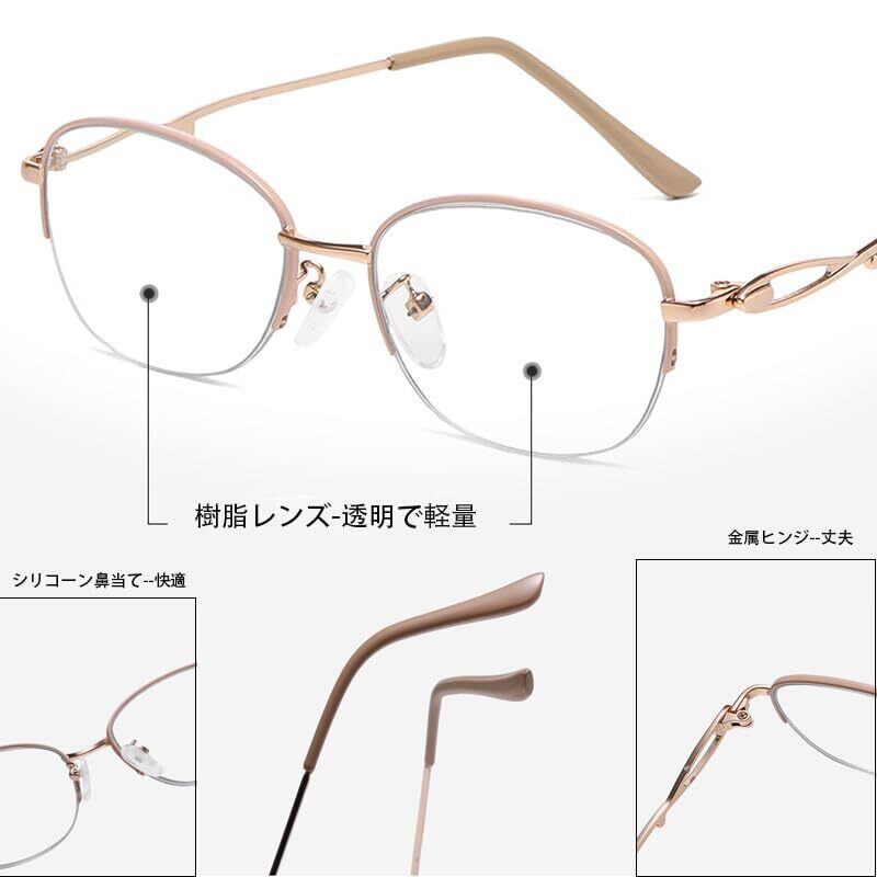 [NEGISU] 老眼鏡 レディース オシャレ 半フレーム お洒落 人気 薄型 メガネ めがね 専用ケース付き シニアグラス ハーフ メタル ブルーライトカットオシャレ リーディンググラス プレゼント度付き 2831