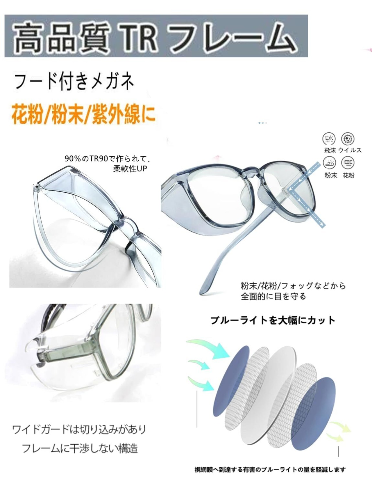 [Marcea] 花粉症 花粉防止 花粉対策 [曇らない ブルーライトカット] 曇り止め 眼鏡 保護メガネ おしゃれ 飛沫防止 よけメガネ 保護 防塵 紫外線対策