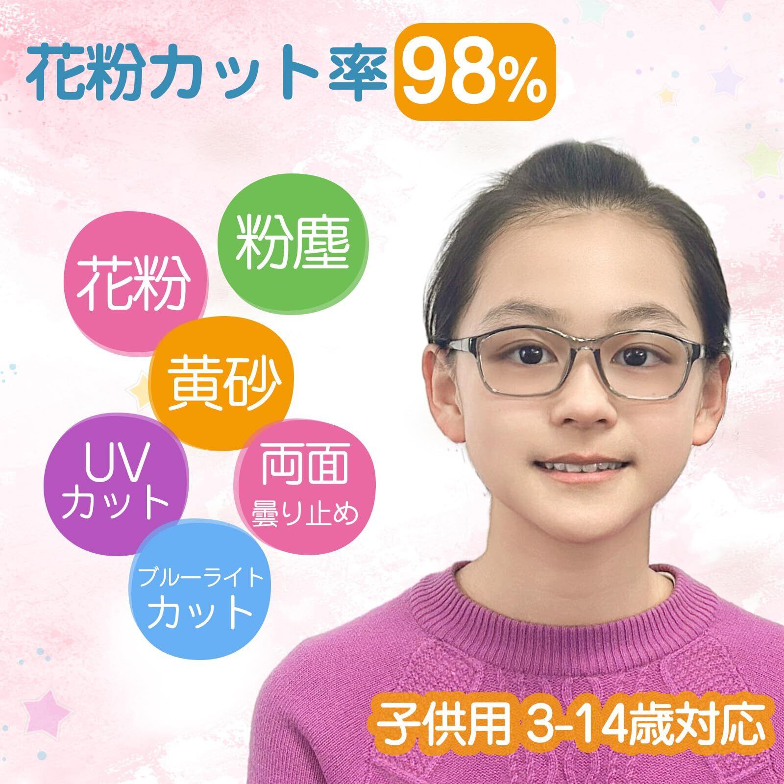 [GOKEI] 花粉防止メガネ 子供用 両面曇り止め ブルーライトカット 花粉症 3-14歳 こども キッズ 曇らない 飛沫防止メガネ 花粉対策 クリア