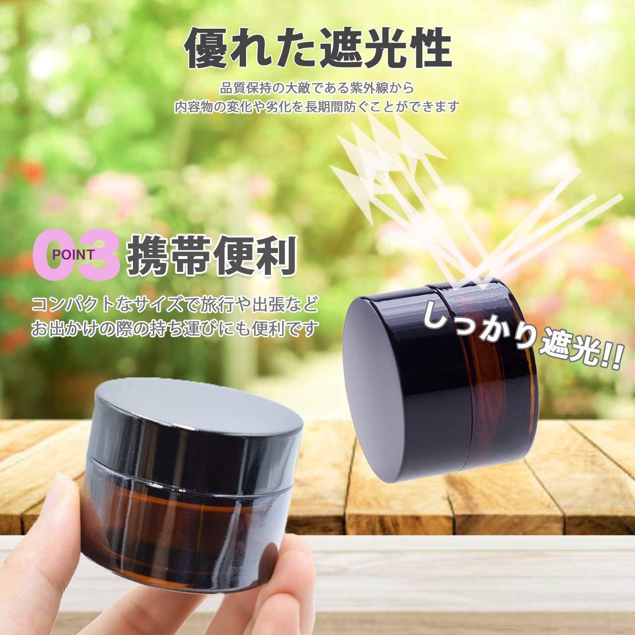 HIRAISM クリーム容器 遮光瓶 ガラス製 ジャー 詰め替え 保存用 中蓋付き ブラウン (10g, 20個)