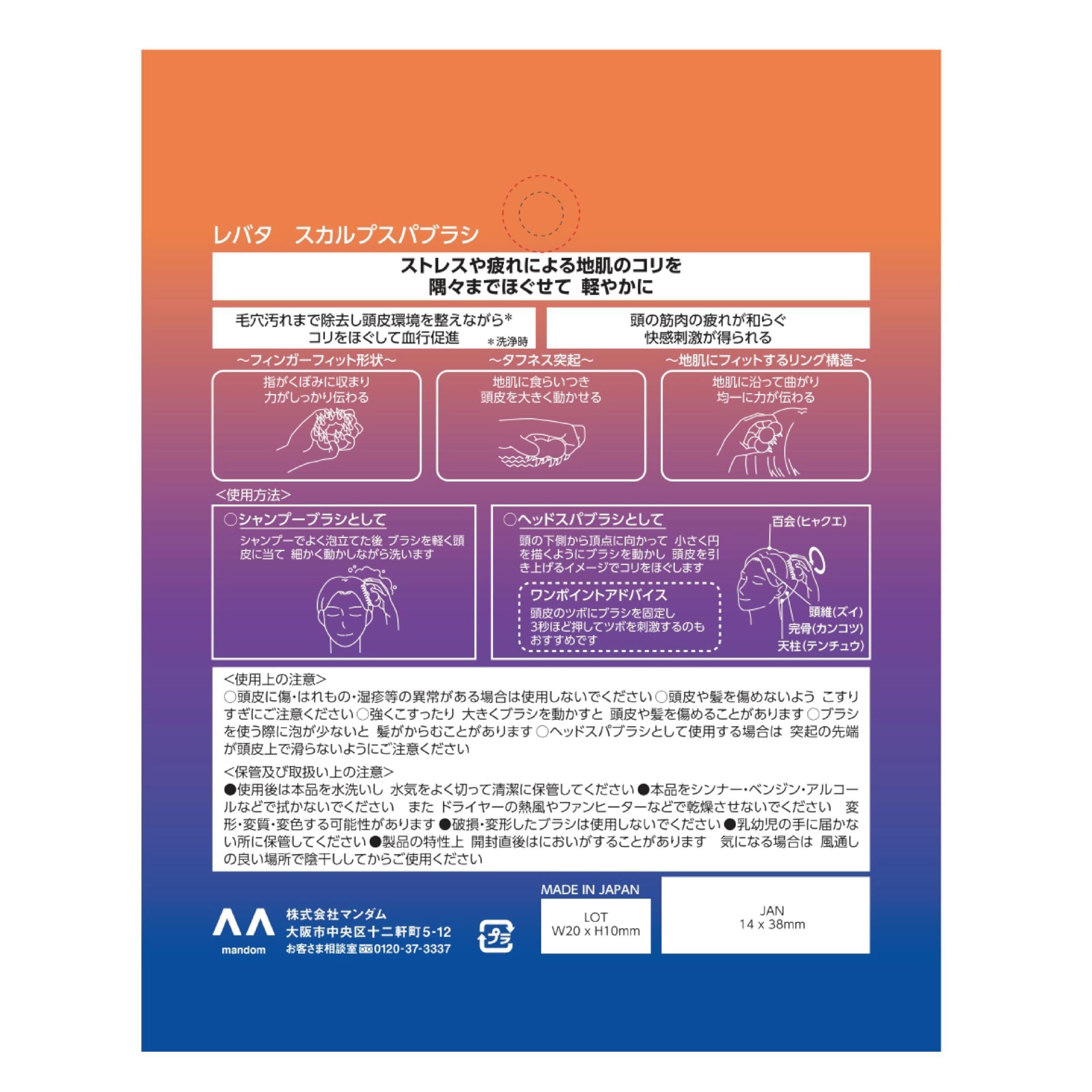 <使用上の注意> ○頭皮に傷・はれもの・湿疹等の異常がある場合は使用しないでください。○頭皮や髪を傷めないようこすりすぎにご注意ください。○強くこすったり、大きくブラシを動かすと、頭皮や髪を傷めることがあります。○ブラシを使う際に泡が少ないと、髪がからむことがあります。○ヘッドスパブラシとして使用する場合は突起の先端が頭皮上で滑らないようにご注意ください。 <保管及び取扱い上の注意> ●使用後は本品を水洗いし、水気をよく切って清潔に保管してください。●本品をシンナー・ベンジン・アルコールなどで拭かないでください。また、ドライヤーの熱風やファンヒーターなどで乾燥させないでください。変形・変質・変色する可能性があります。●破損・変形したブラシは使用しないでください。●乳幼児の手に届かない所に保管してください。●製品の特性上、開封直後はにおいがすることがあります。気になる場合は、風 通しの良い場所で陰干ししてからご使用ください。