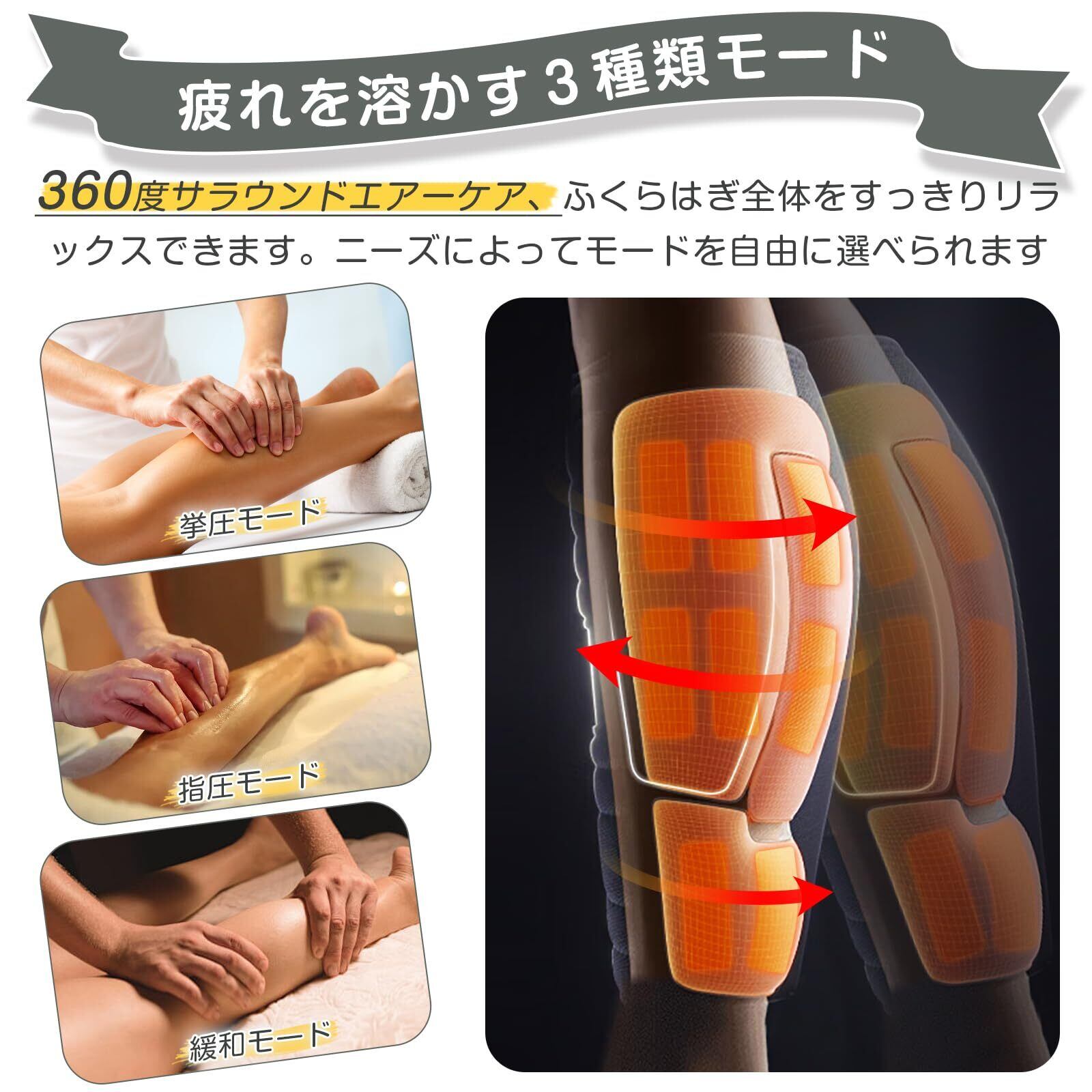 ■【手軽にリフレッシュ!心地よいふくらはぎケア!】YOIIYOのふくらはぎケアは、3つのモードと温度設定を搭載した高機能なマシンです。自宅やオフィスで手軽に使用でき、プロのマッサージ体験を実現します✨ 疲れた脚を優しくほぐし、リラックスした時間をお届けします。