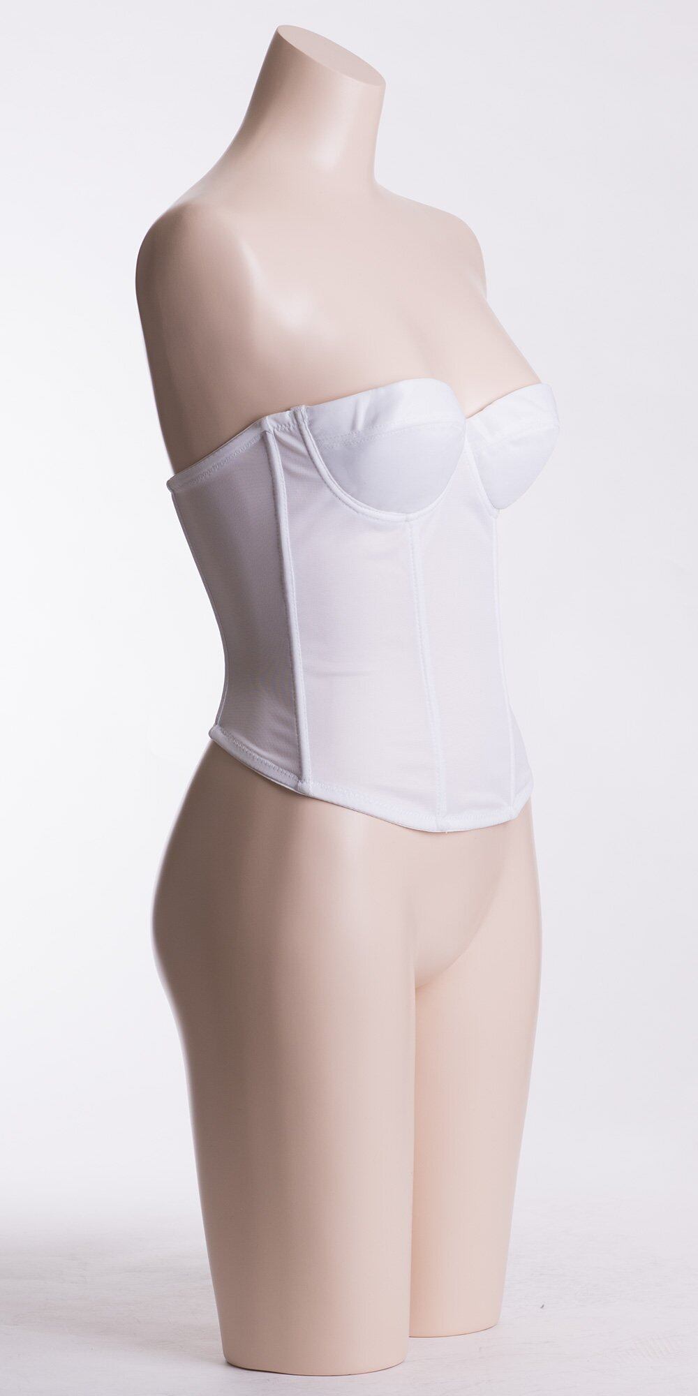 美しいドレスラインは美しいボディメイクから始まります。 ビスチェはブライダルインナーの基本中の基本。 縦6本のボーンでサイドラインを作り、カップ下のボーンでバストもキープ。