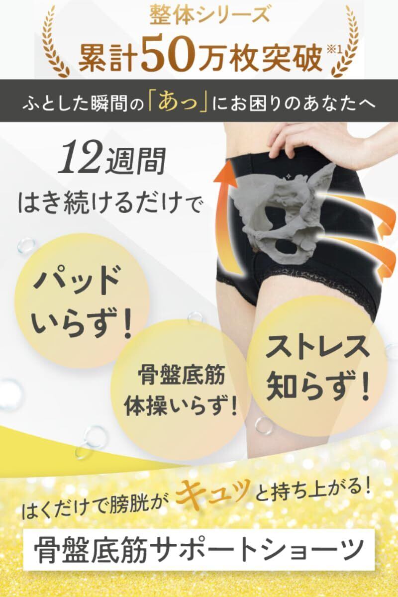 【シリーズ累計50万枚突破!(2025年1月時点)】はくだけで垂れ下がった膀胱がキュッと持ち上がる!骨盤底筋サポートショーツ「整体ショーツ モレンヌ」。生体工学研究で導き出された膀胱を持ち上げ、漏れ対策の最新設計。