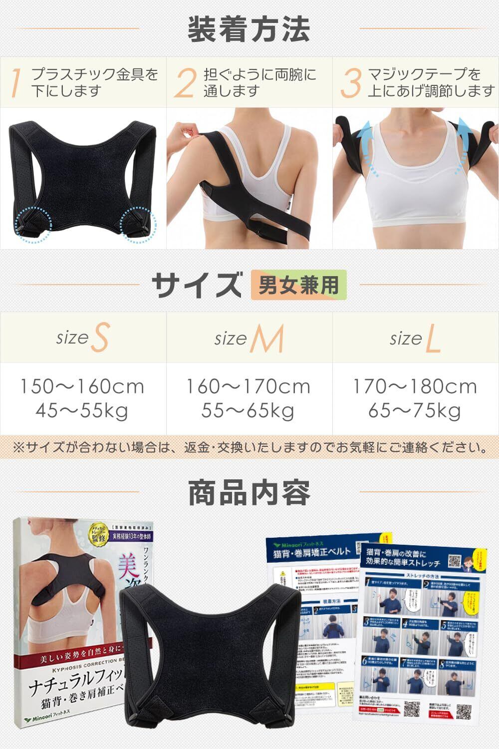 Minaoriフィットネス L 猫背 ベルト 姿勢サポーター 姿勢ベルト [整体師監修] 巻き肩 背筋 背中 男女兼用 MOF-NKB-L